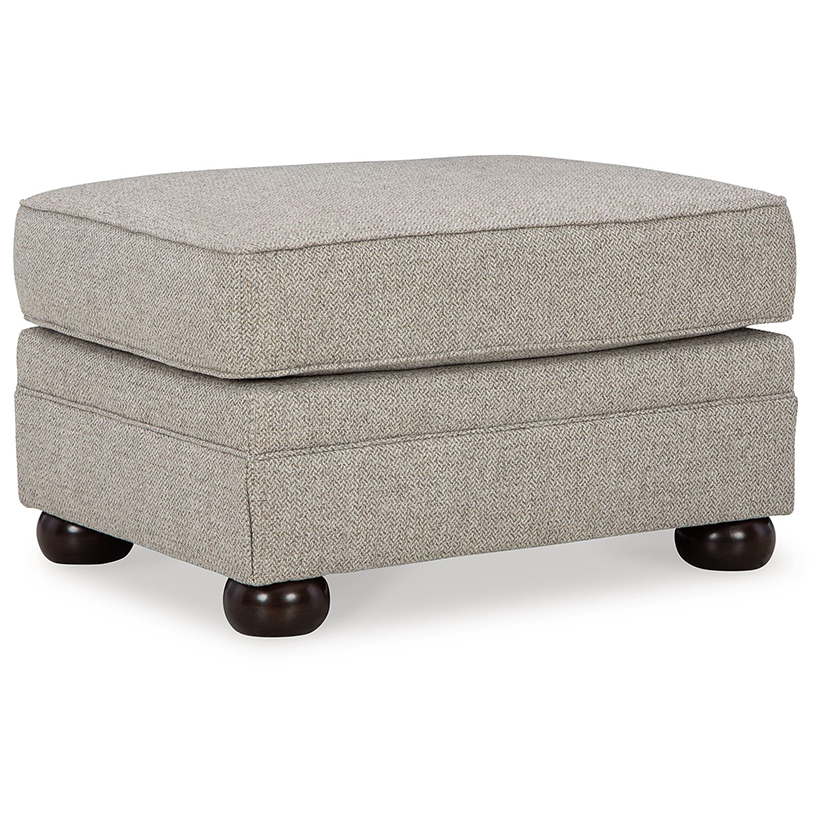 Inspired by the past but rooted firmly in the present, this ottoman complements your transitional seating area. Its versatile upholstery is delightfully detailed for a subtle herringbone effect. Designer touches like bun legs add traditional character. With this ottoman's reliable style and comfort, all you need to do is kick back and relax.