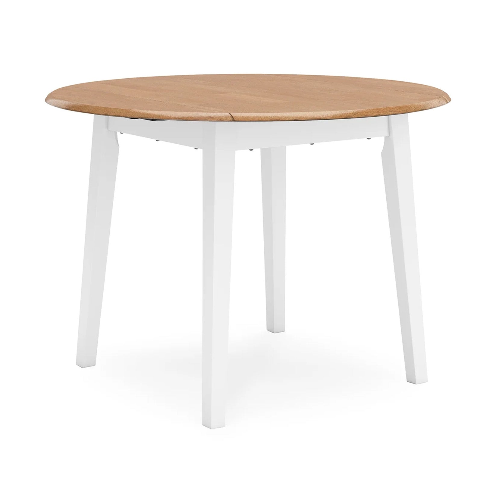 Complement your home’s simply relaxed sensibility with this drop-leaf dining table. A crisp white hue offers a chic contrast to the natural wood tone, for a neutral look that vibes with a variety of aesthetics. When guests drop by, convert it from a space-saving two-seater to a larger table with the two drop leaves. Whether you're sipping your morning coffee, settling in for dinner or working from home, this table is smartly designed for everyday comfort and style.