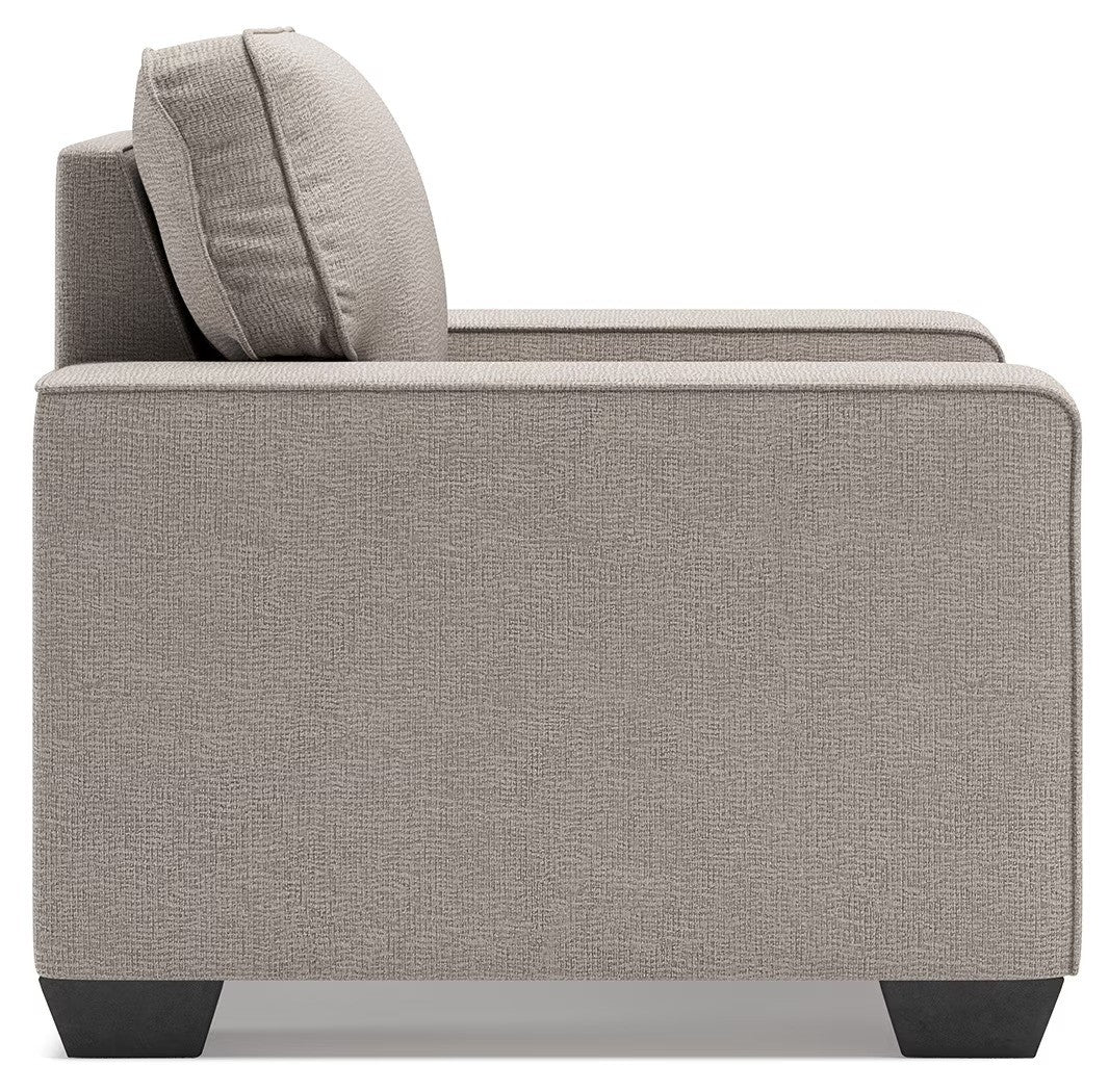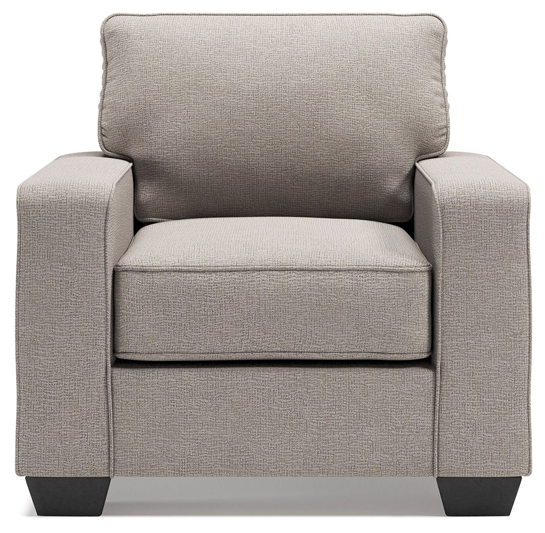 Make your living space that much more livable with this arm chair. Rest assured that its ultra-neutral upholstery with a textural chenille feel goes with anything and everything. Wide track armrests, box cushions and tapered feet lend a clean, contemporary aesthetic. Make it even more enticing by pairing it with the available matching ottoman and reserve yourself the best seat in the house.