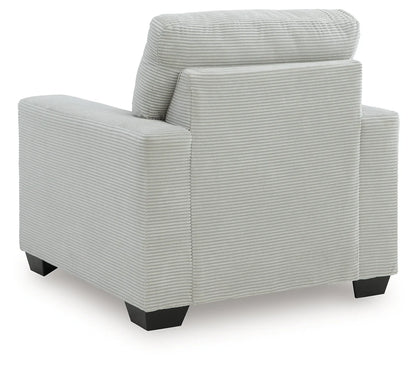 The crisp neutral hue and striking design details of this chair create a living room that expertly reflects your modern taste. For irresistibly cool textural appeal, the ultra-soft fabric is enhanced by a small-scale corded look. With a clean-lined silhouette complete with track arms, this chair allows you to take a trend-right approach to everyday living.