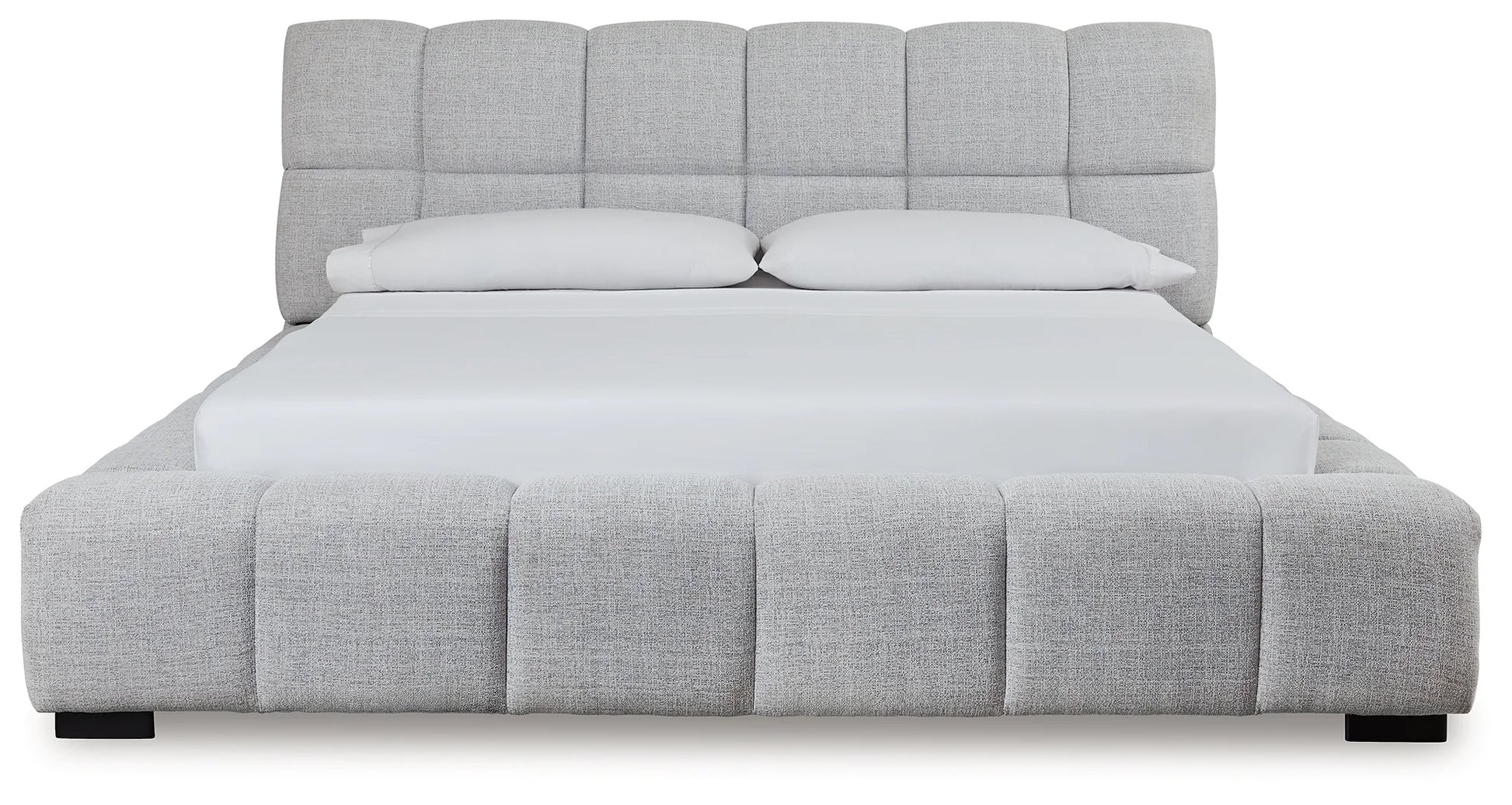 A divine merger of casual and contemporary design, this California king upholstered bed is the upgrade you've been dreaming of. Plush, deep pillowed tufting creates an impressive silhouette that's just as comfortable as it is stylish. And the textured light gray Next-Gen Nuvellaв„ў performance fabric is soft and easy to clean. Now there's a bed with staying power.
