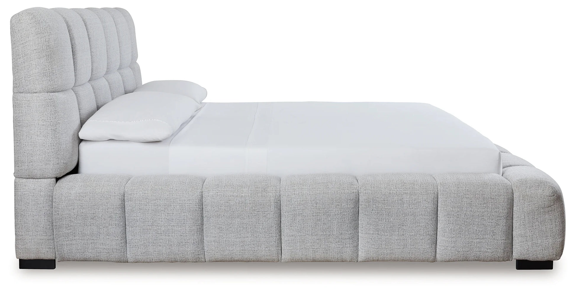 A divine merger of casual and contemporary design, this king upholstered bed is the upgrade you've been dreaming of. Plush, deep pillowed tufting creates an impressive silhouette that's just as comfortable as it is stylish. And the textured light gray Next-Gen Nuvellaв„ў performance fabric is soft and easy to clean. Now there's a bed with staying power.