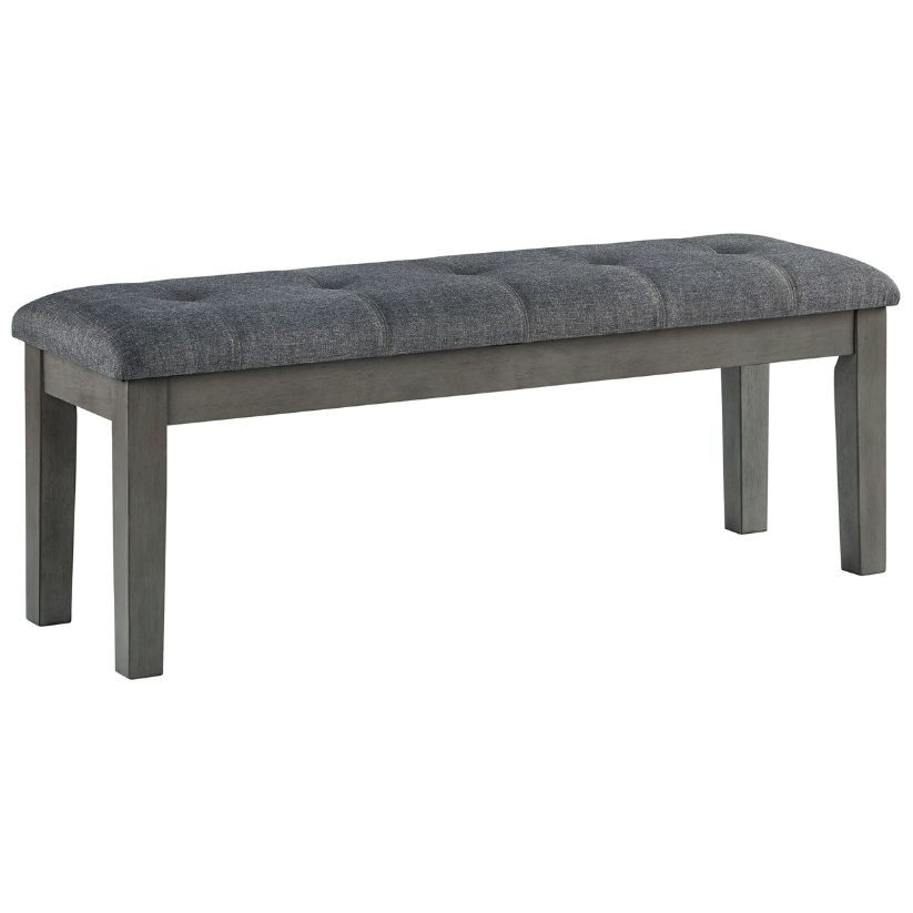 Cool and on-trend. This dining bench sports a two-tone gray look for a contemporary-yet-casual feel. The cushioned foam seat in a gray textural fabric pairs seamlessly with the antiqued gray finish, providing you with a super-stylish and versatile seating option.