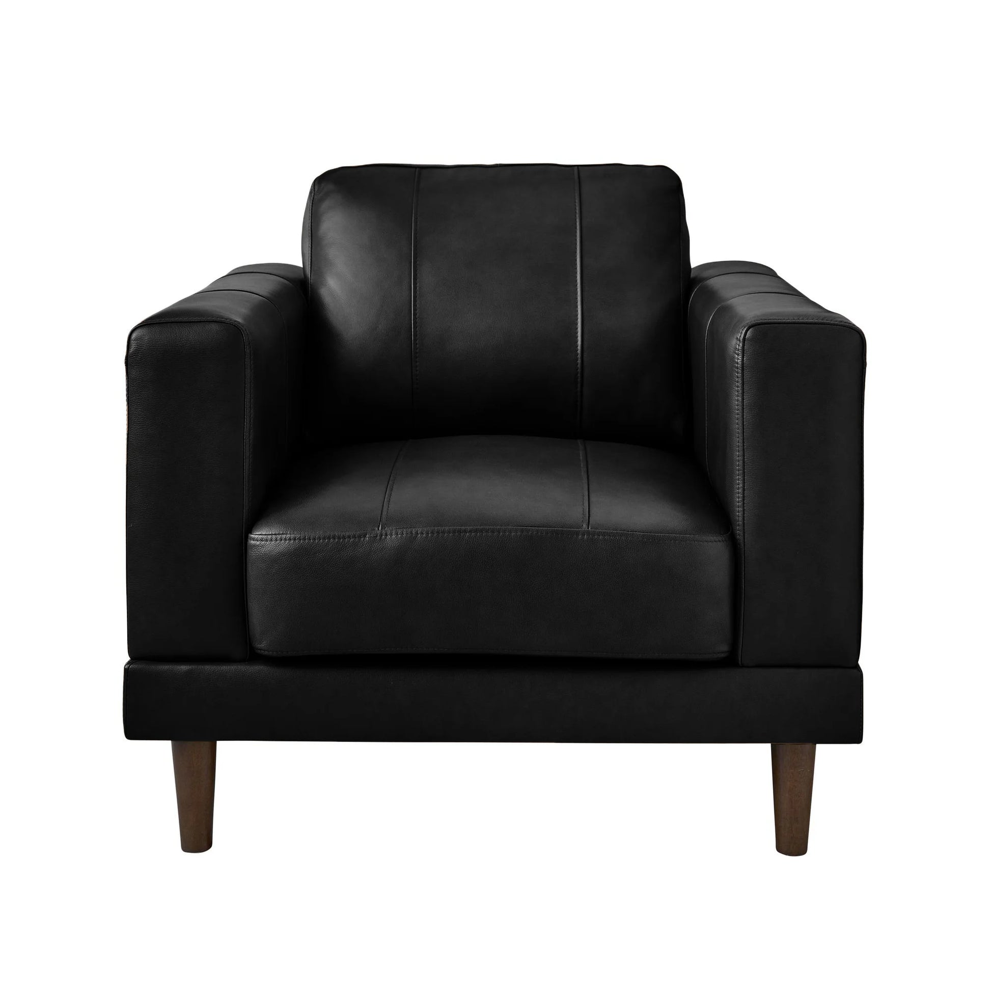 The Hampton Chair is a sleek addition for your office, living room, and more. Upholstered in Rich Leather with wooden tapered legs. It is The Perfect Mixture of Style and Comfort. Piped Seams Add A Touch Of Sophiscation.