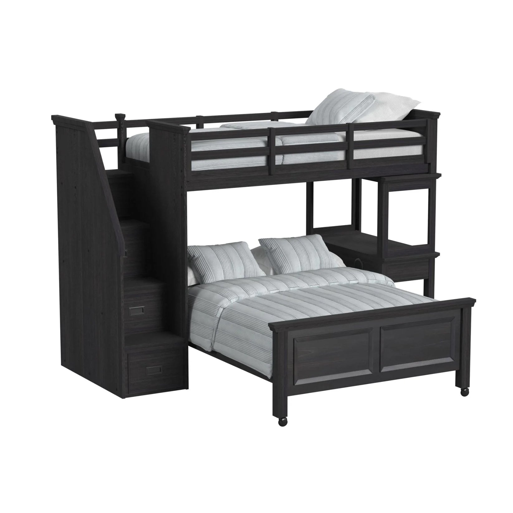 Hampton Kids - Twin Over Full Loft With Staircase And Desk With Speaker - Charcoal