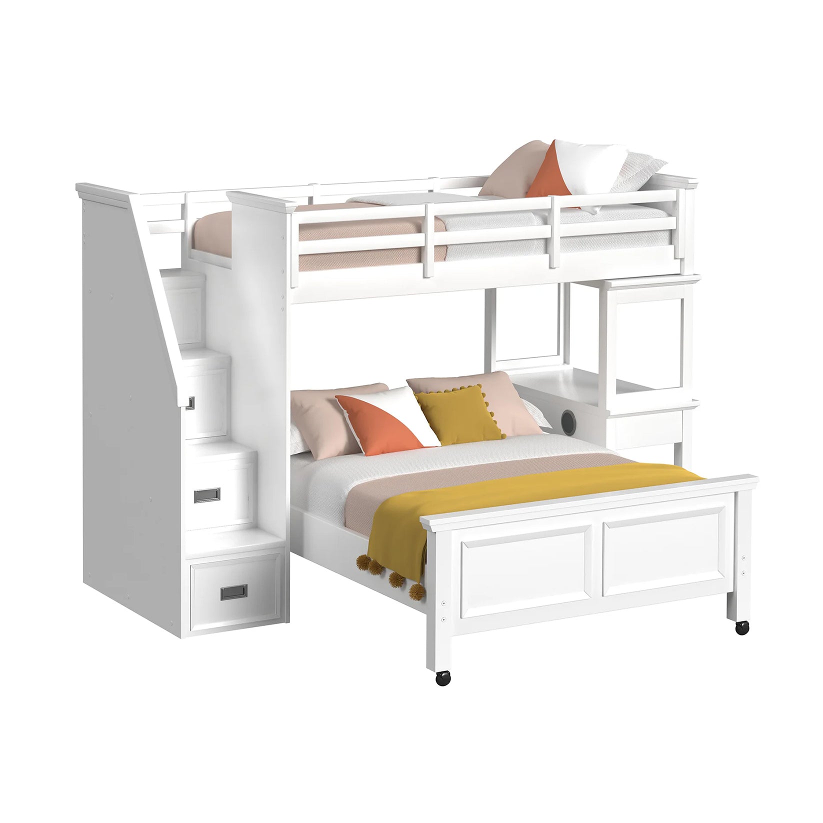 Hampton Kids - Twin Over Full Loft With Staircase And Desk With Speaker - White