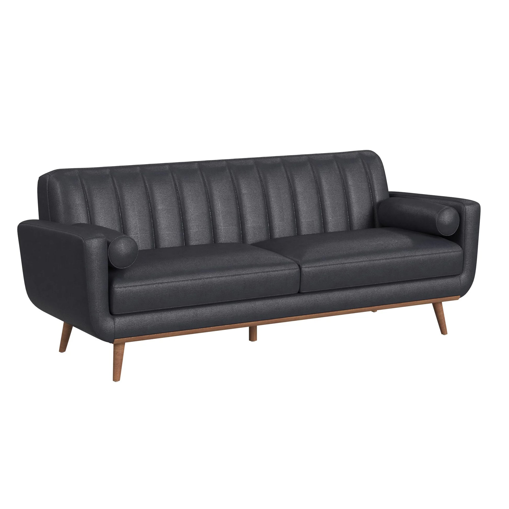 The Horizon 3 Piece Living Room Set exudes the coveted charm of mid-century modern style. Built with a frame that is fully upholstered in quality faux leather, this collection is built for durability. Comfortable foam cushioning, decorative tufting on the backrests, included bolster pillows, and track arms forming sleek lines culminate to mark thoughtful design, while exposed front rails and wood legs highlight excellent craftsmanship. For a refined and sleek addition to your living space, the Horizon 3 Piece Living Room Set delivers in quality and style.