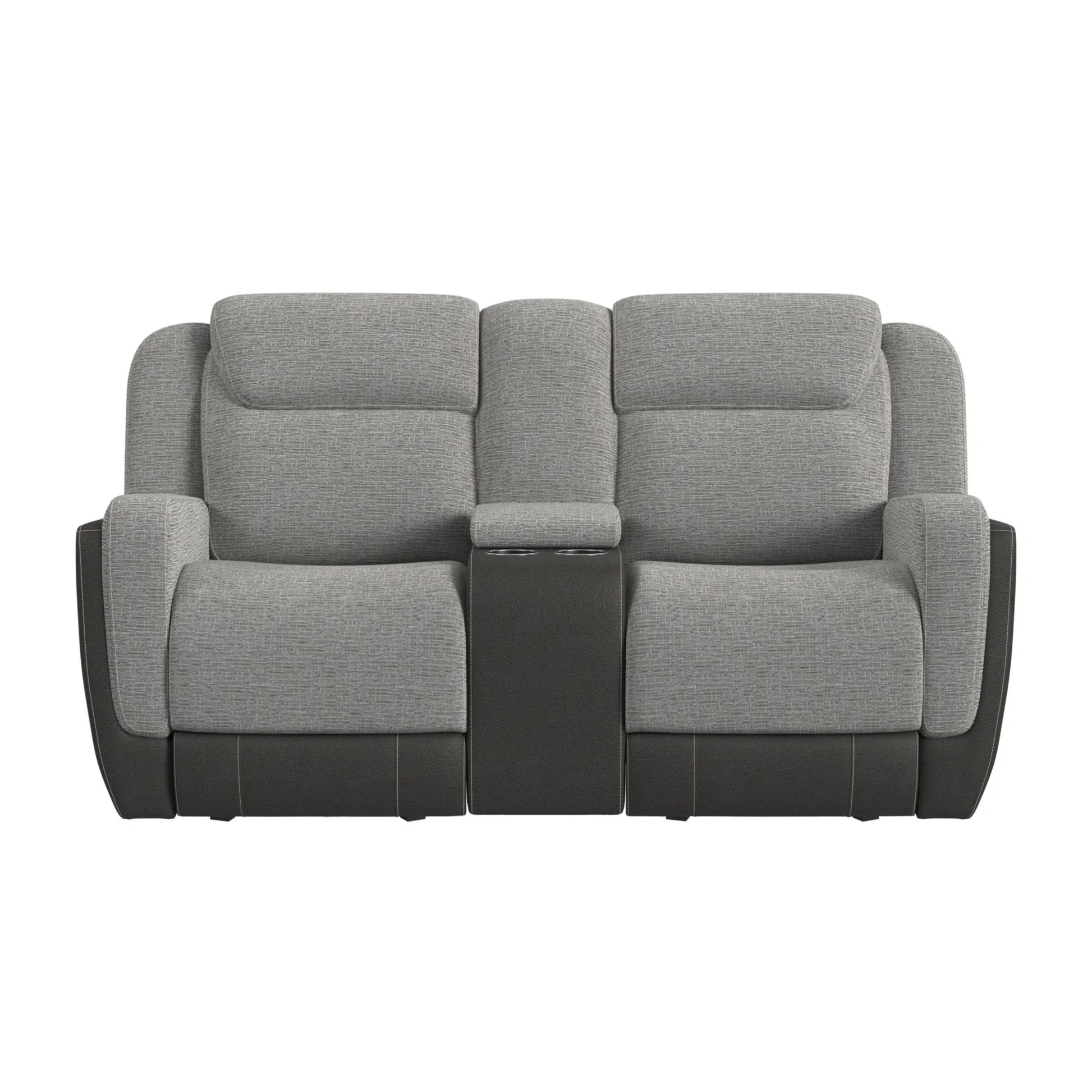 Experience unmatched comfort and convenience with the Hornet Motion Glider Loveseat with Console. Designed with aesthetic dual-toned upholstery, this piece offers a stylish look that complements any living space. Gliding and manual reclining functionality allows for easy adjustment to your perfect lounging position, while steel springs seating and foam cushioning provide long-lasting support. The center console features two metal cupholders and a convenient storage compartment, making it the ideal spot for unwinding with all your essentials close at hand. The Hornet Motion Glider Loveseat accents your living with refined style and ageless comfort.