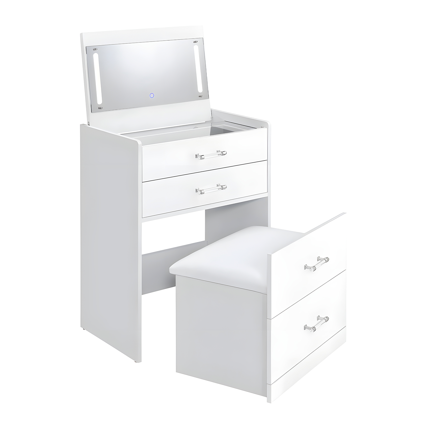 Irvine - Mini Vanity With Stool, LED And USB - Glossy White