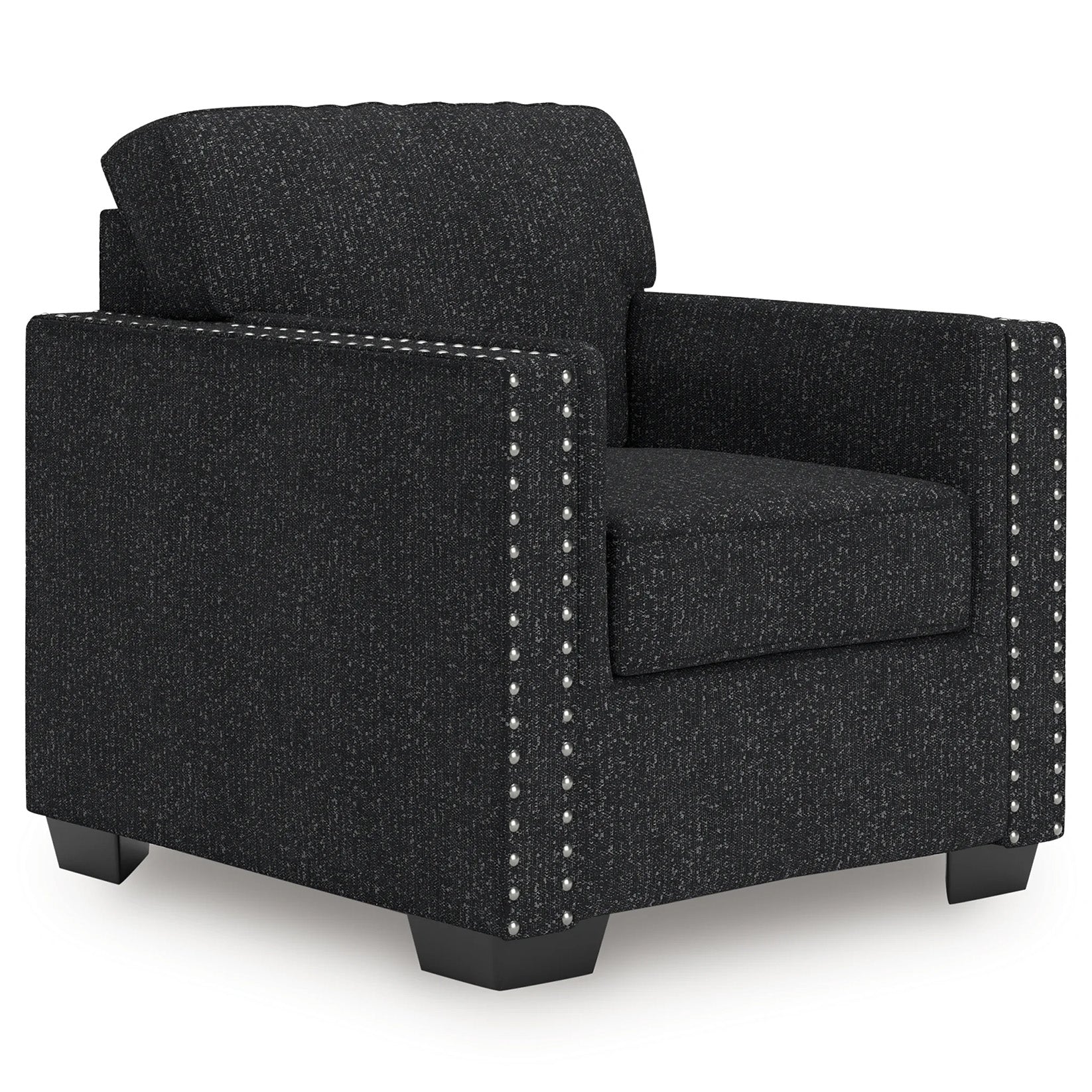 This stunning chair leaves a lasting impression. Its cozy cushions, chic coal-colored upholstery and striking nailhead trim are a perfect blend of comfort and contemporary design. And here’s the showstopper—ambient red, white and blue LED lighting along the chair's base. The look is simply wow.