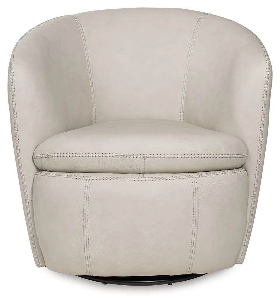 Experience the perfect blend of well-appointed comfort and stylish design with this swivel accent chair. Its supple leather and barrel back invite you to settle in and relax, while the sleek 360-degree swivel base keeps you engaged with conversations. Designed with functional luxury in mind, it’s the ideal fit for your contemporary lifestyle.