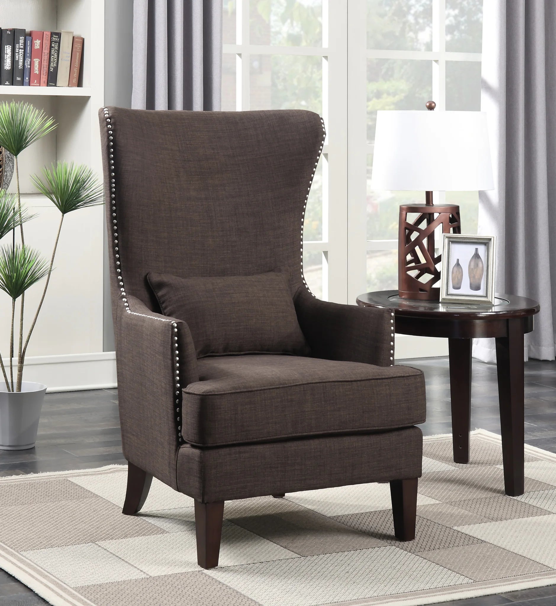 The Kori Accent Chair boasts a charming array of vibrant color options as well as a refined design. Resting on dark espresso legs, the Koris crisp lines, elegant long back and chic studded trim make this a one-of-a-kind upholstered sensation in any home.