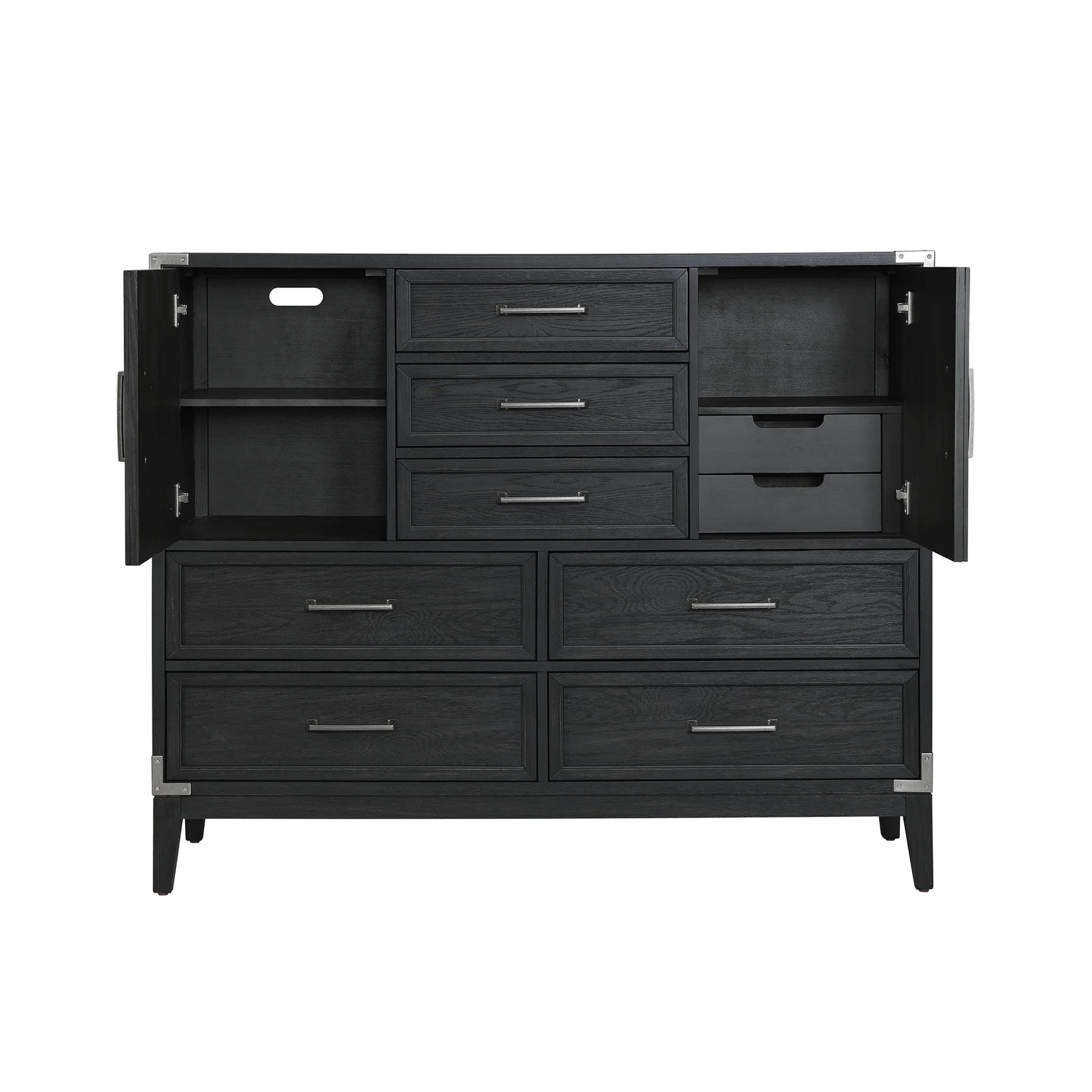 The Laguna Bedroom Collection is offered in a wire-brushed multi-step glazed finish, in a complimenting Weathered Steel color. Special features include hardware with an antiqued pewter finish, and decorative metal corner brackets on all items. This collection also offers two unique items, a Floor Mirror and a Storage Bench; perfect items to round out any bedroom revamp!