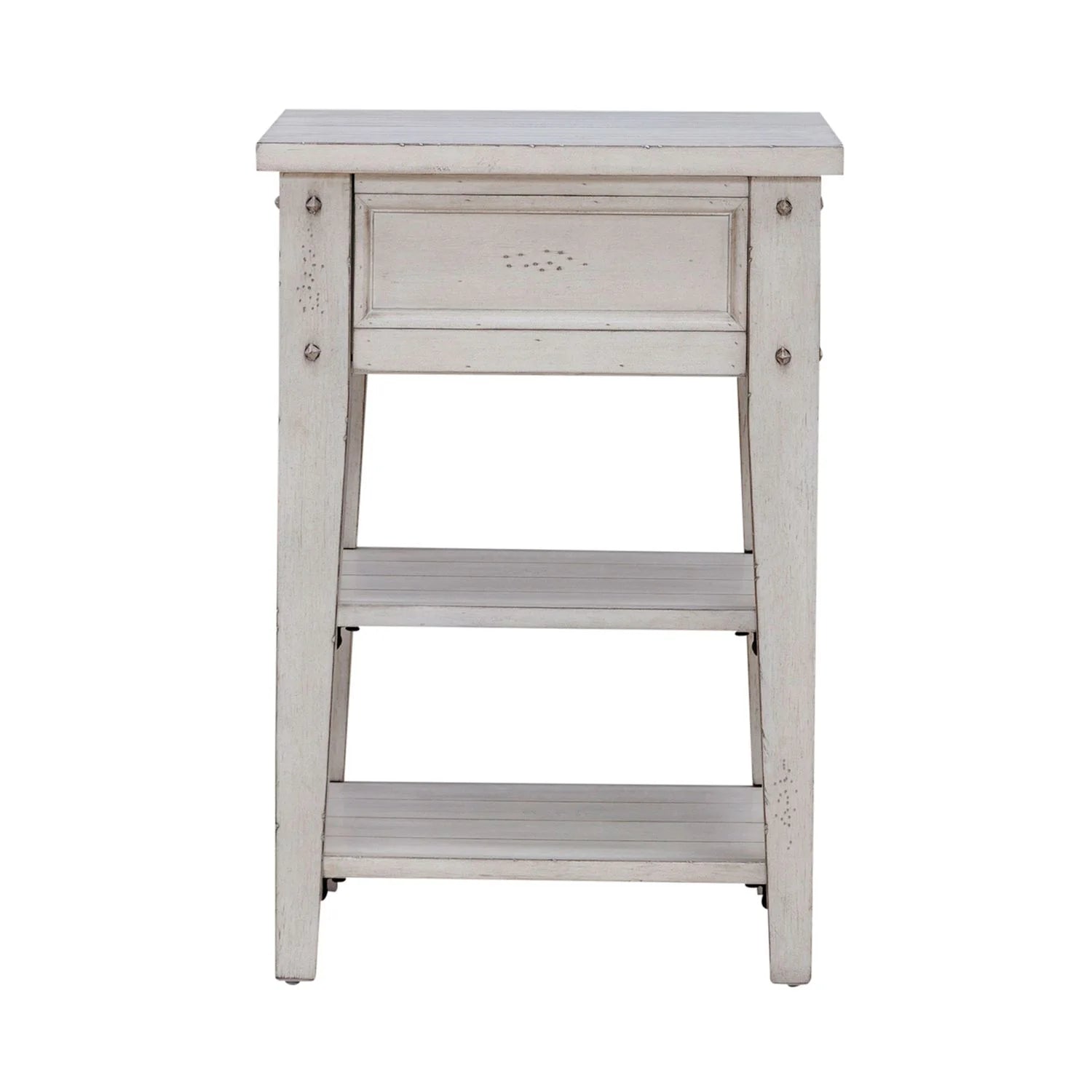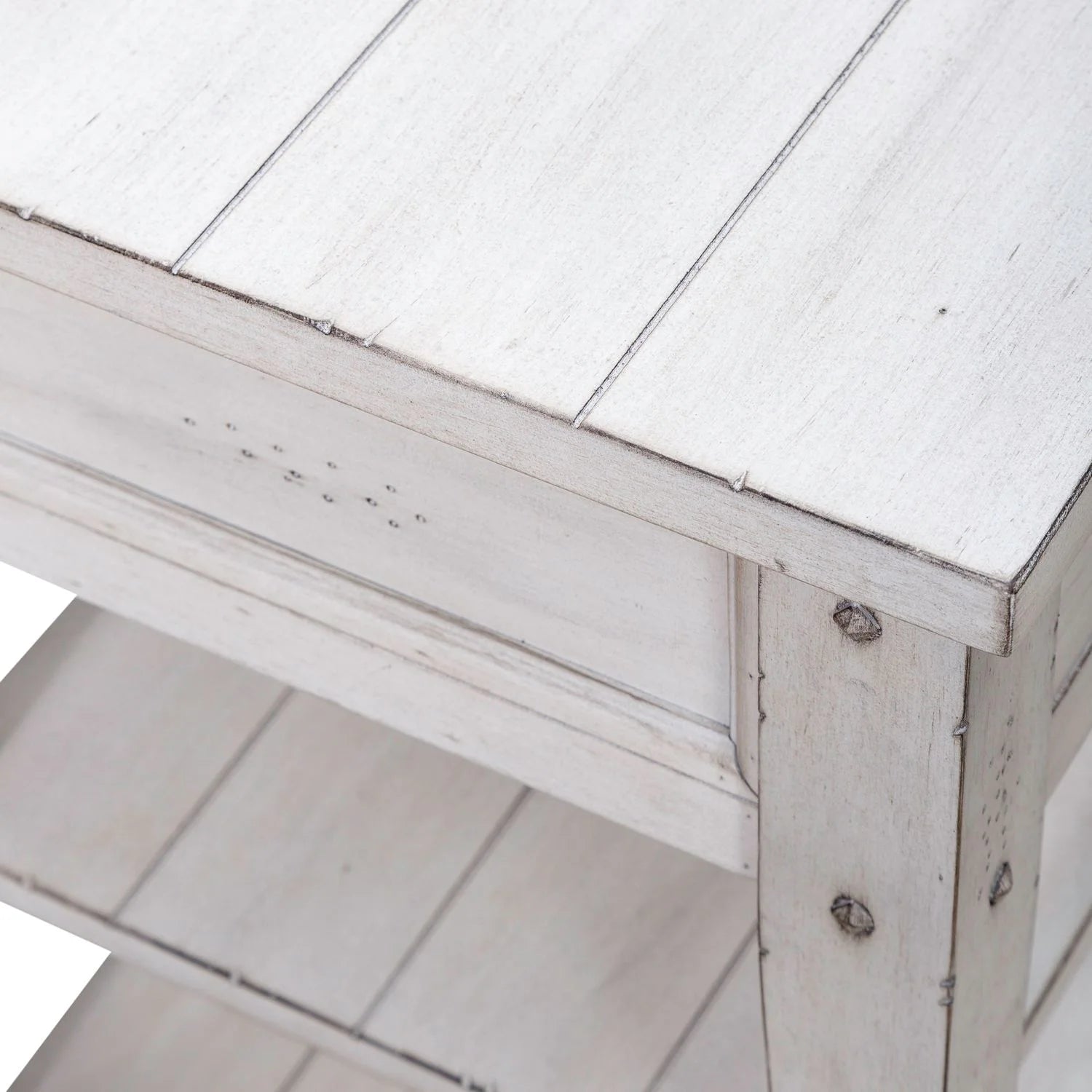 Lake House Occasional made of Select hardwoods & Oak Veneers with Multi-Step Hand Applied Oak Finish. Appealing Planked Tops & Tapered Legs with Veneered Shelves. The Drawers feature Wood-on-Wood Drawer Glides with Wood-on-Wood Drawer Glides
