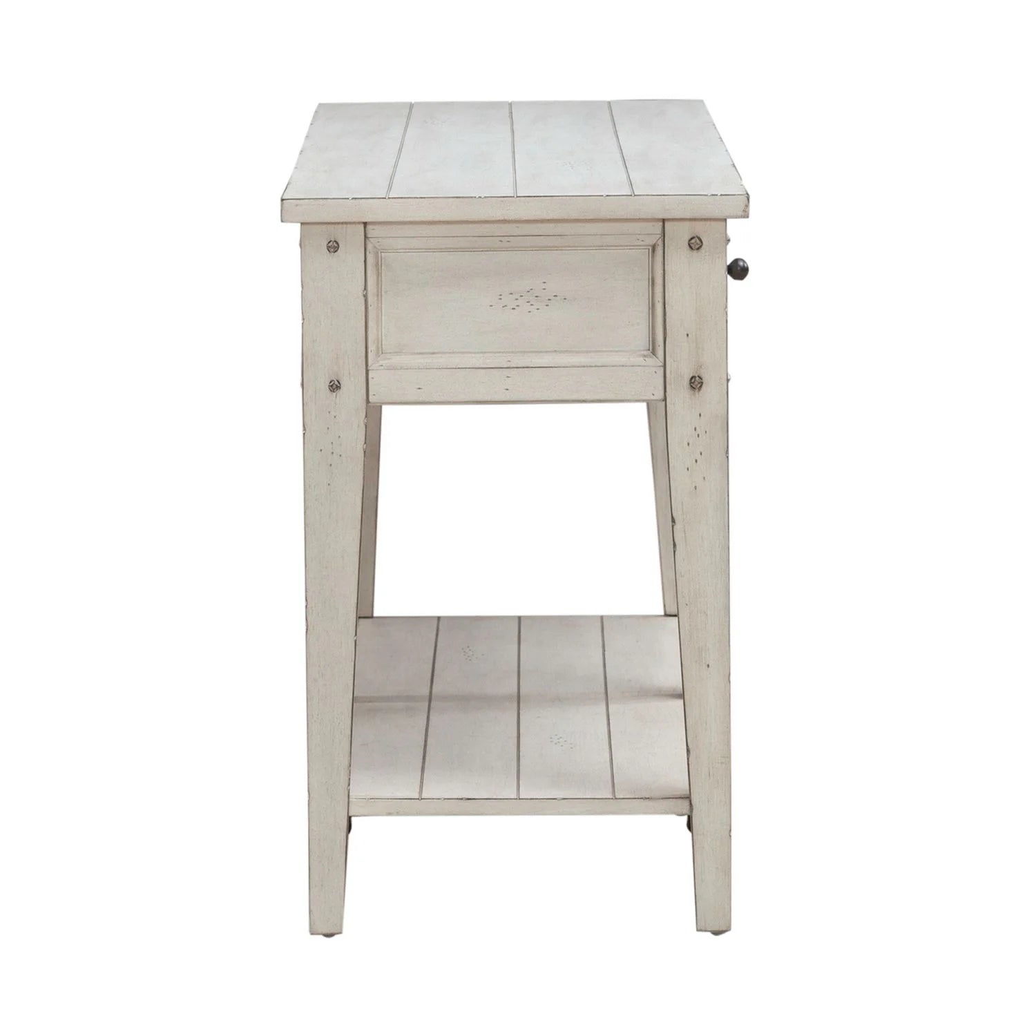 Lake House Occasional made of Select hardwoods & Oak Veneers with Multi-Step Hand Applied Oak Finish. Appealing Planked Tops & Tapered Legs with Veneered Shelves. The Drawers feature Wood-on-Wood Drawer Glides with Wood-on-Wood Drawer Glides