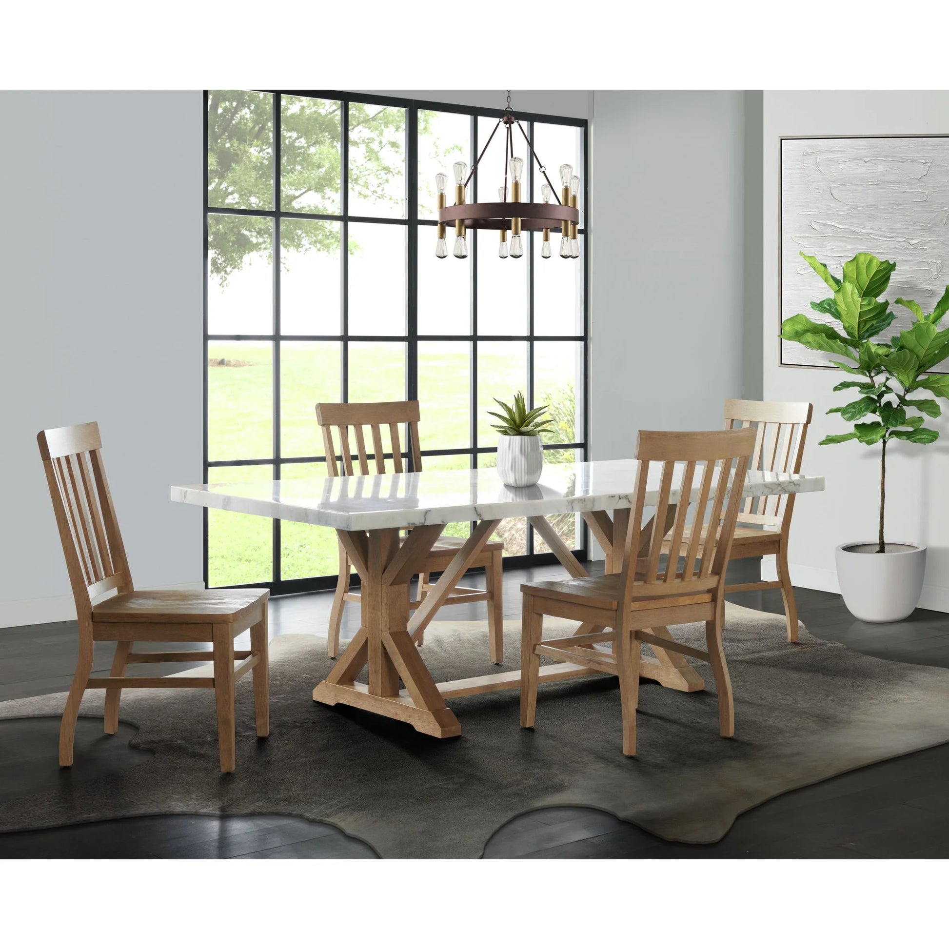 The Lakeview Rectangle Dining Table will look marvelous in your home! This table features, a white marble top and a natural finish base. The white, marble table top details light veining with subtle grey tones. The table top transitions beautifully into the natural wood finish base. Also, the trestle base provides full stability for the marble top. If you are looking to complete this table, check out the slat back chair in this collection.