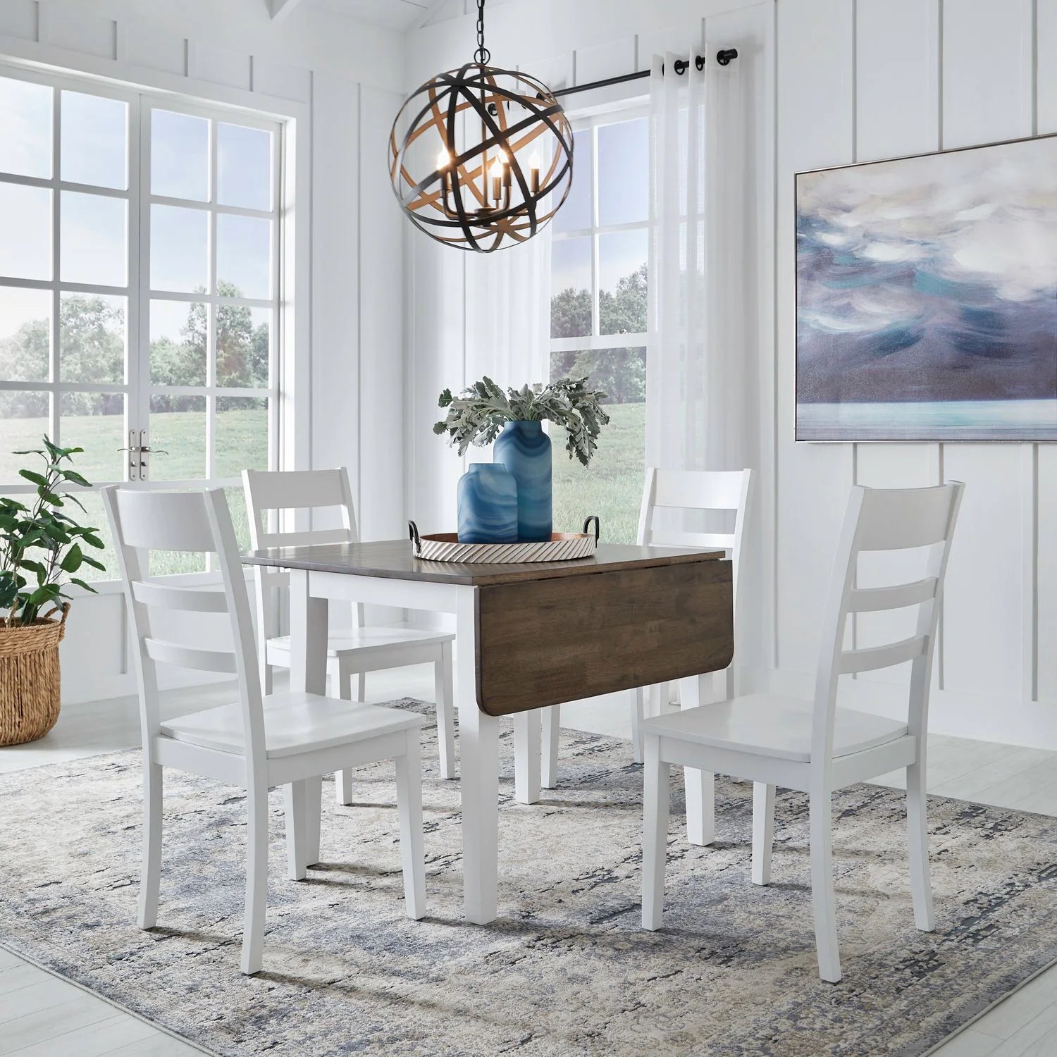 - Includes Drop Leaf Table & 4 Ladderback Side Chairs
