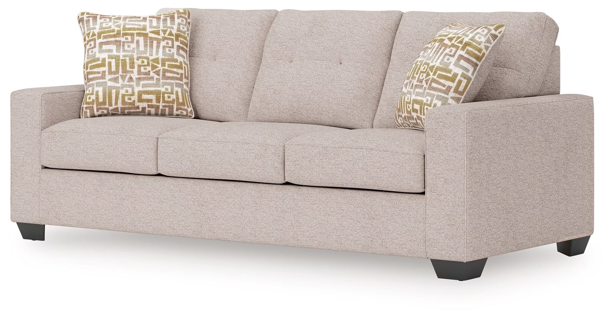 Sincere in its styling, this queen sofa sleeper marries classic function with modern design elements for truly transitional appeal. Its track arms lend a contemporary vibe while soft, durable upholstery ups the comfort level. Guests dropping by? The included memory foam mattress effortlessly provides extra sleeping space and neatly tucks away when not in use. And with the goes-with-anything neutral color, styling this sofa is made simple.