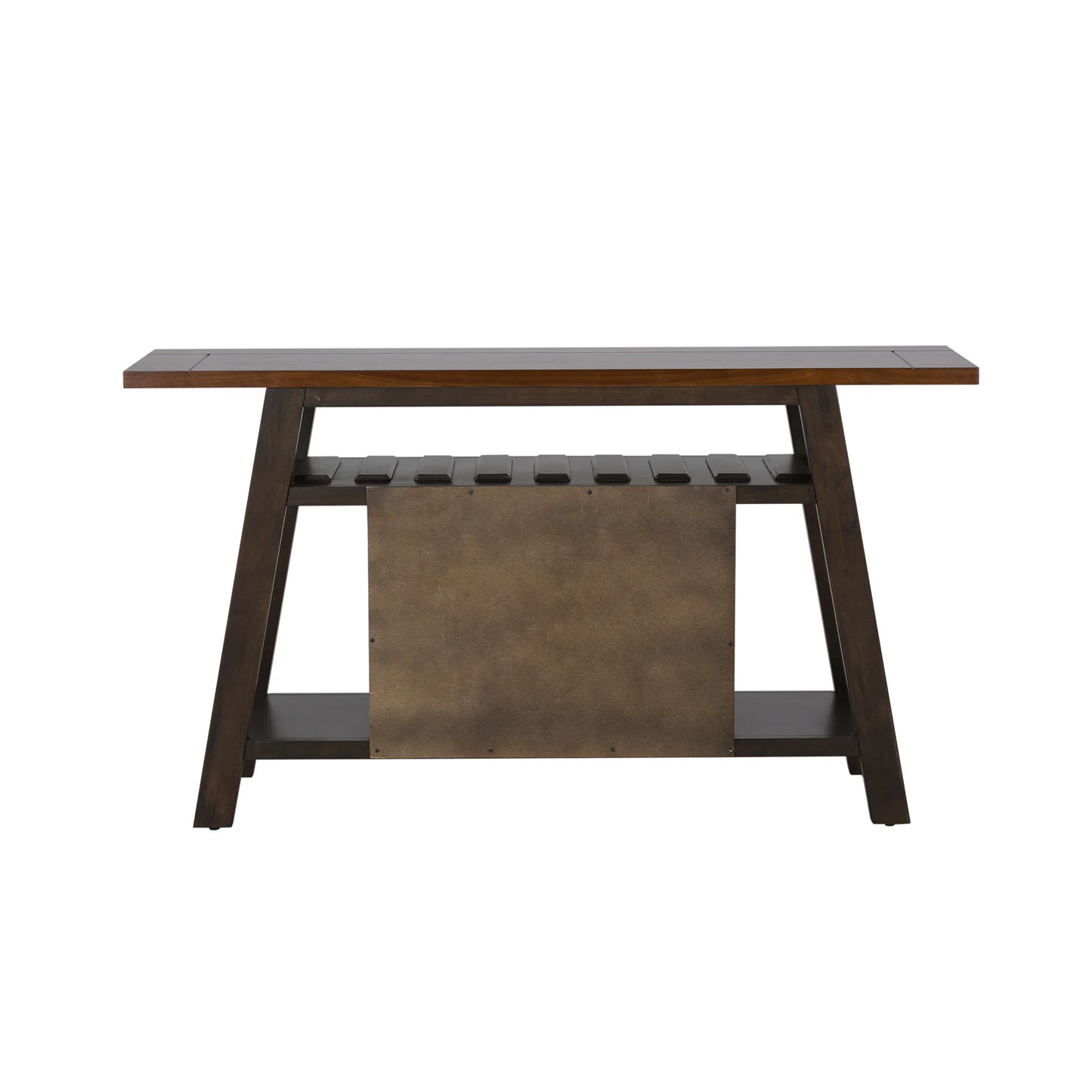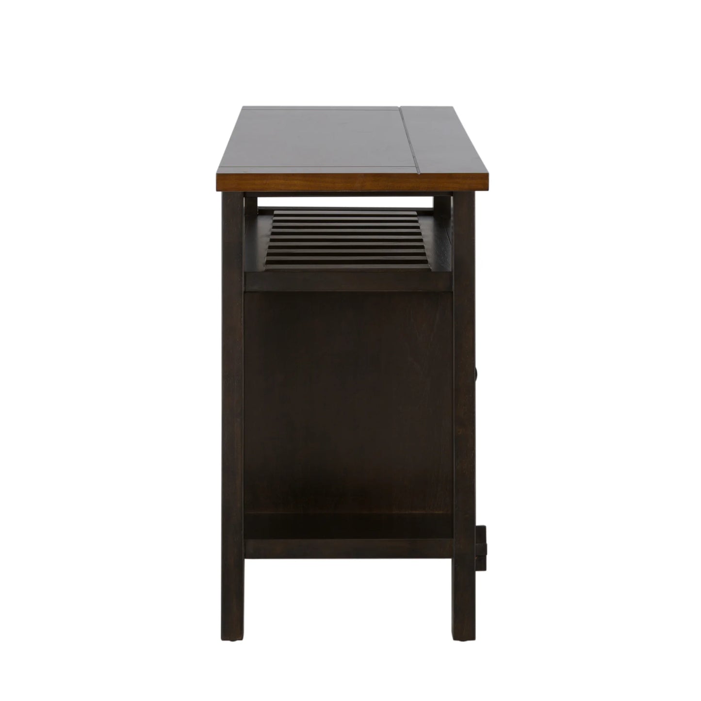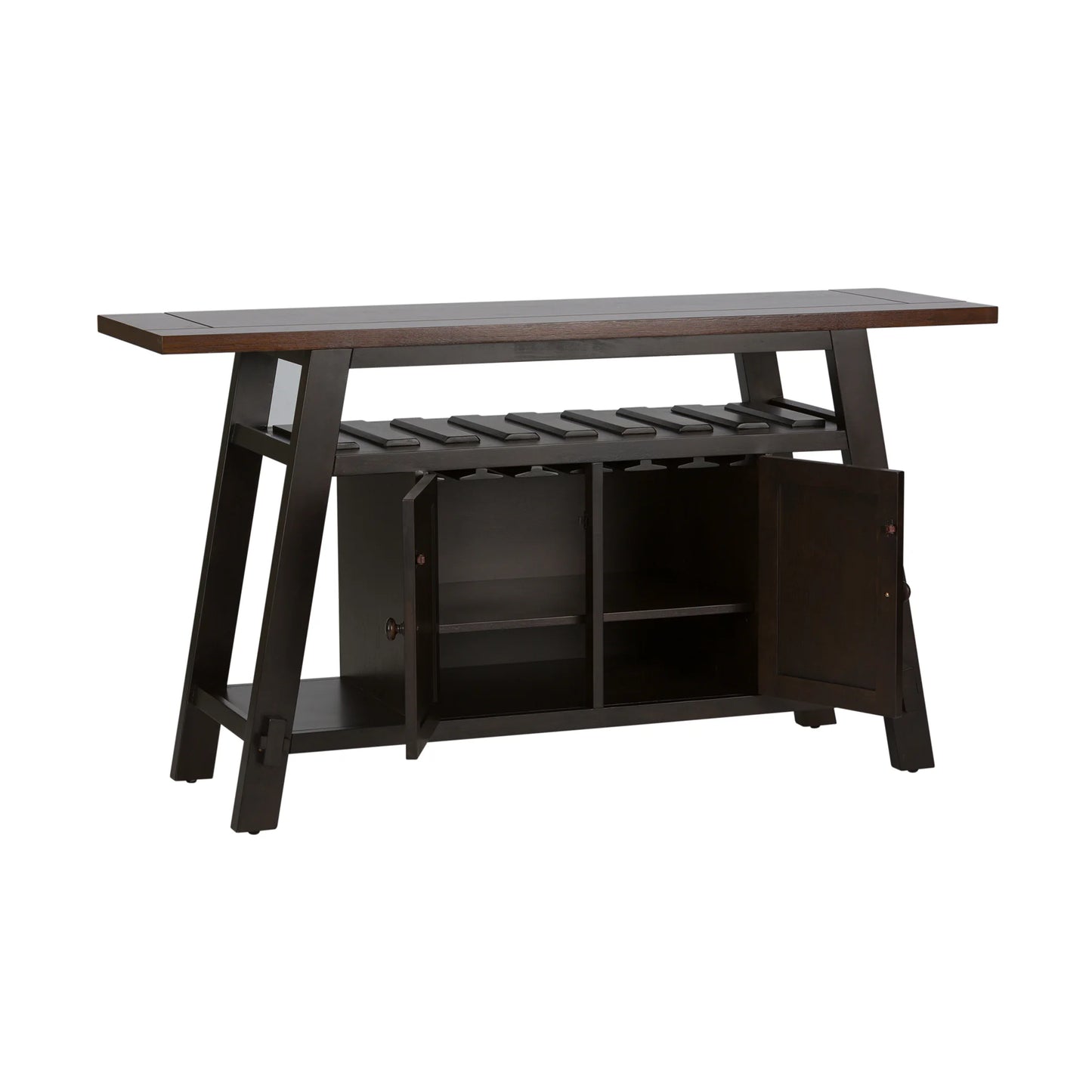 Indulge in transitional styling with the Lawson server. Crafted of rubberwood solids and walnut veneers, this piece features center doors for storage, wine storage that can hold up to eight bottles, side shelf display, and one adjustable shelf hidden behind the doors. The light and dark expresso finish creates a look that is sure to pair beautifully with any décor in your home.