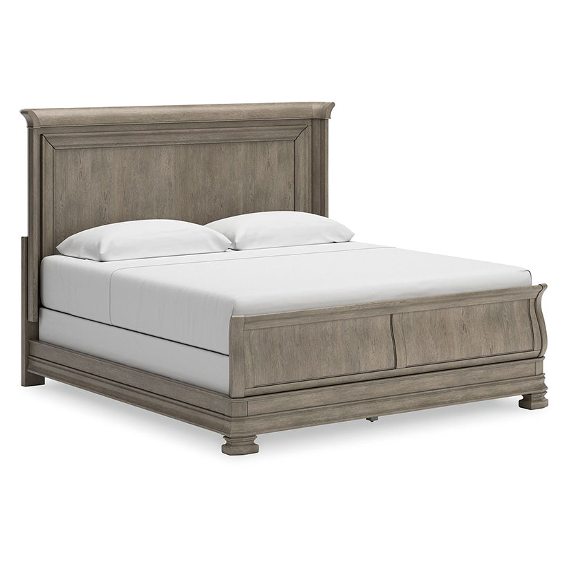 Traditional design motifs, redefined for today’s trends. Inspired by timeless Louis Philippe styling, this king sleigh bed is distinguished by its stunning attention to detail. You’ll find the light gray finish encourages an attitude of laid-back luxury. Complete with a shelter wing headboard design and a thick profiled base, it reigns over your bedroom with an air of casual elegance.