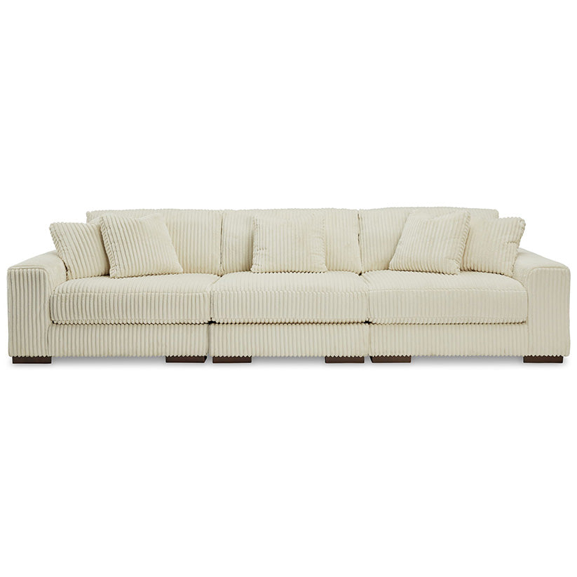Plush and posh. Showcase your eye for on-trend texture with the statement-making cord upholstery of this sectional. Its stunningly soft fabric entices in an ivory hue, complementing contemporary color palettes. Sink into the cushions and plan to stay a while—this cozy living room centerpiece highlights your high-end approach to comfort and style.