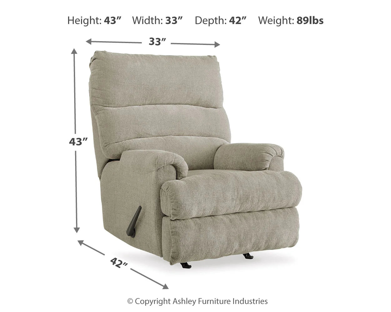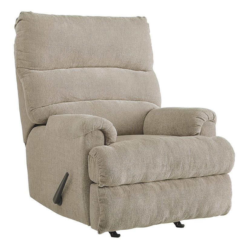 Roll out a cool look for your man cave or femme den with this indulgent recliner. Waterfall cushioning on the high back is paired with a double-roll footrest for a high-style aesthetic that cradles you in comfort from head to toe. Tweed-weave neutral upholstery is decadently soft and loaded with texture.