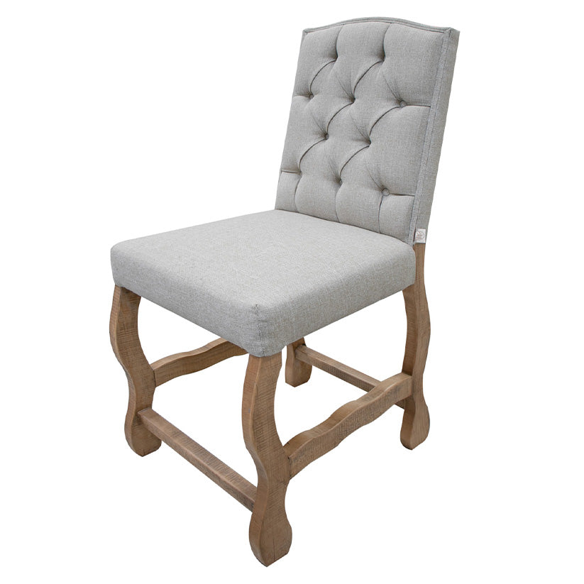 Inspired by farmhouse style, our Marquez upholstered barstool is designed to complement your space, adding a classic touch. It features a tufted backrest, and its frame is crafted from solid pine wood, making it a sturdy piece of furniture