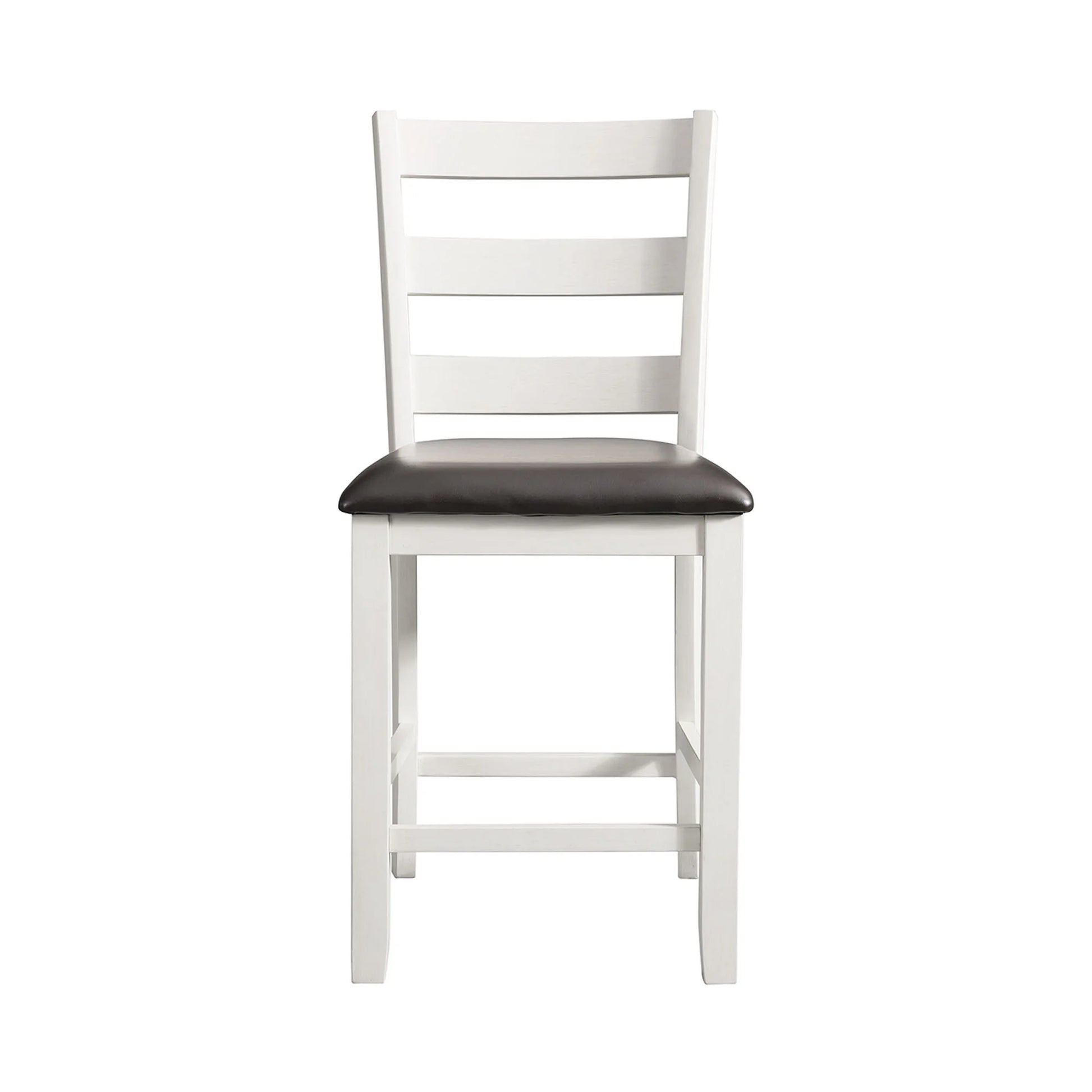 Bring refined style and warm design to your dining area with the Martin Counter dining collection. Constructed of wood solids and veneers with a contrasting sultry black and white finish, this set offers tapered legs, ladder back wooden chairs, and upholstered PU black cushion seats. Clean-lined, comfortable cushions add the finishing touch to this charming collection.