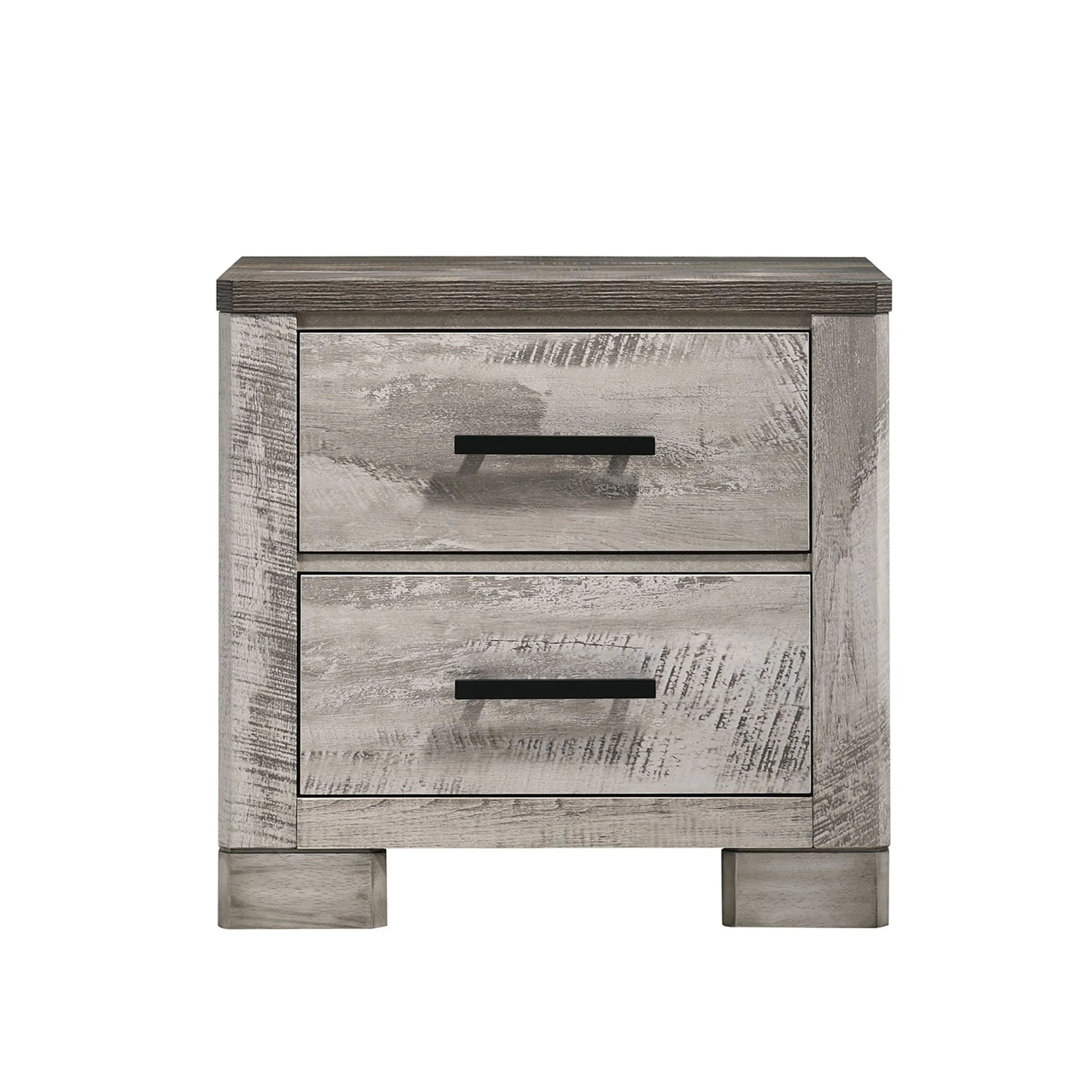 The Millers Cove 2-Drawer Nightstand will look great in your bedroom! This bedside staple offers two spacious drawers, perfect for storing away your belongings. The top drawer is lined with velvet, easily allowing you to store away your more delicate belongings. This nightstand has a 3D paper finish, comes in distressed gray color, giving you a cool update to traditional furniture. The top of the nightstand features a darker gray finish, beautifully contrasting with the light gray. The dark metal drawer handles complement the finish beautifully. The thick, blocked feet adds the perfect finishing touch to this transitional piece.