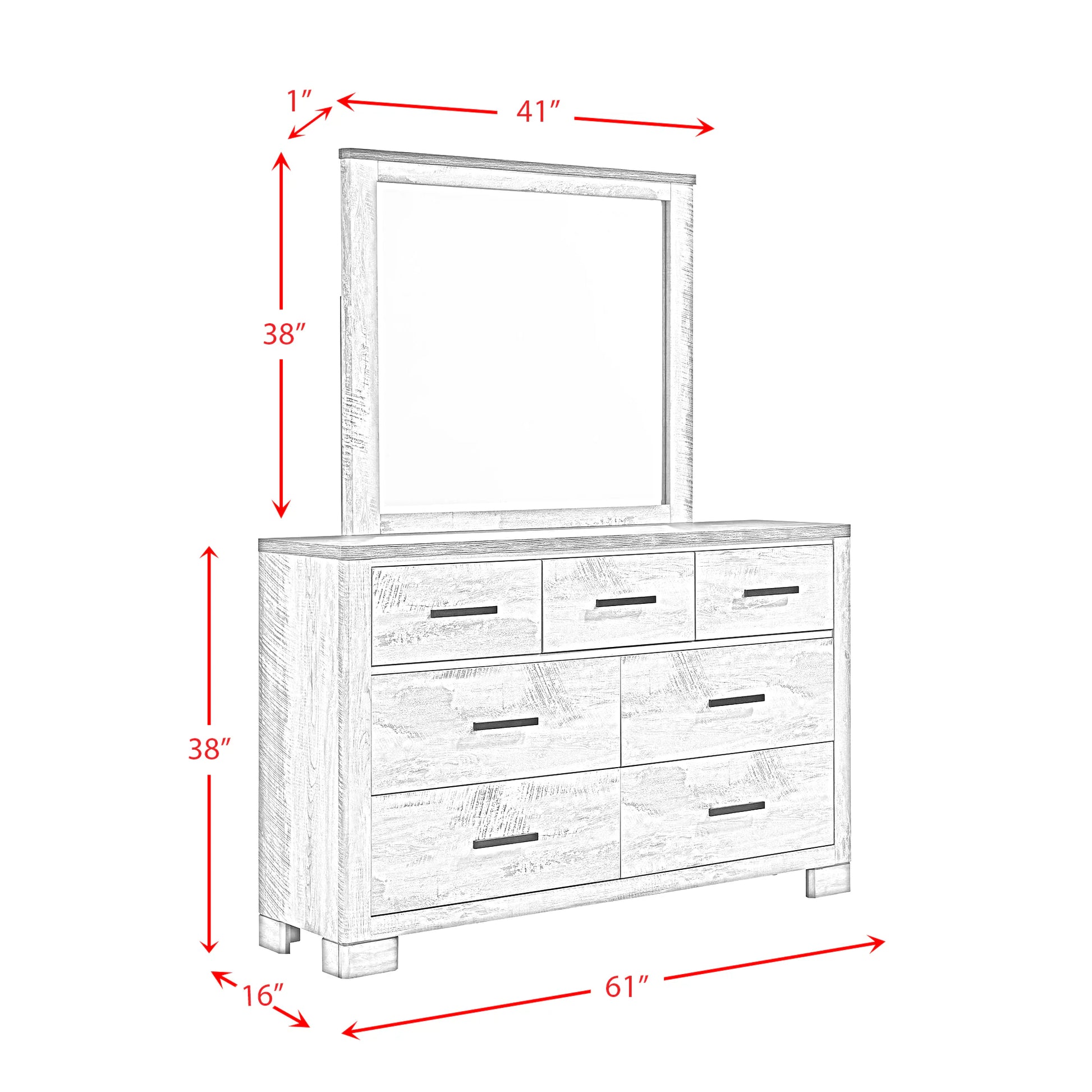 The Millers Cove 7-Drawer Dresser with Mirror will look great in your bedroom! This horizontal dresser offers seven spacious drawers, perfect for storing away your belongings. The top drawers are lined with velvet, easily allowing you to store away your more delicate belongings. This dresser has a 3D paper finish, comes in distressed gray color, giving you a cool update to traditional furniture. The top of the dresser features a darker gray finish, beautifully contrasting with the light gray. The dark metal drawer handles complement the finish beautifully. The thick, blocked feet adds the perfect finishing touch to this transitional piece.