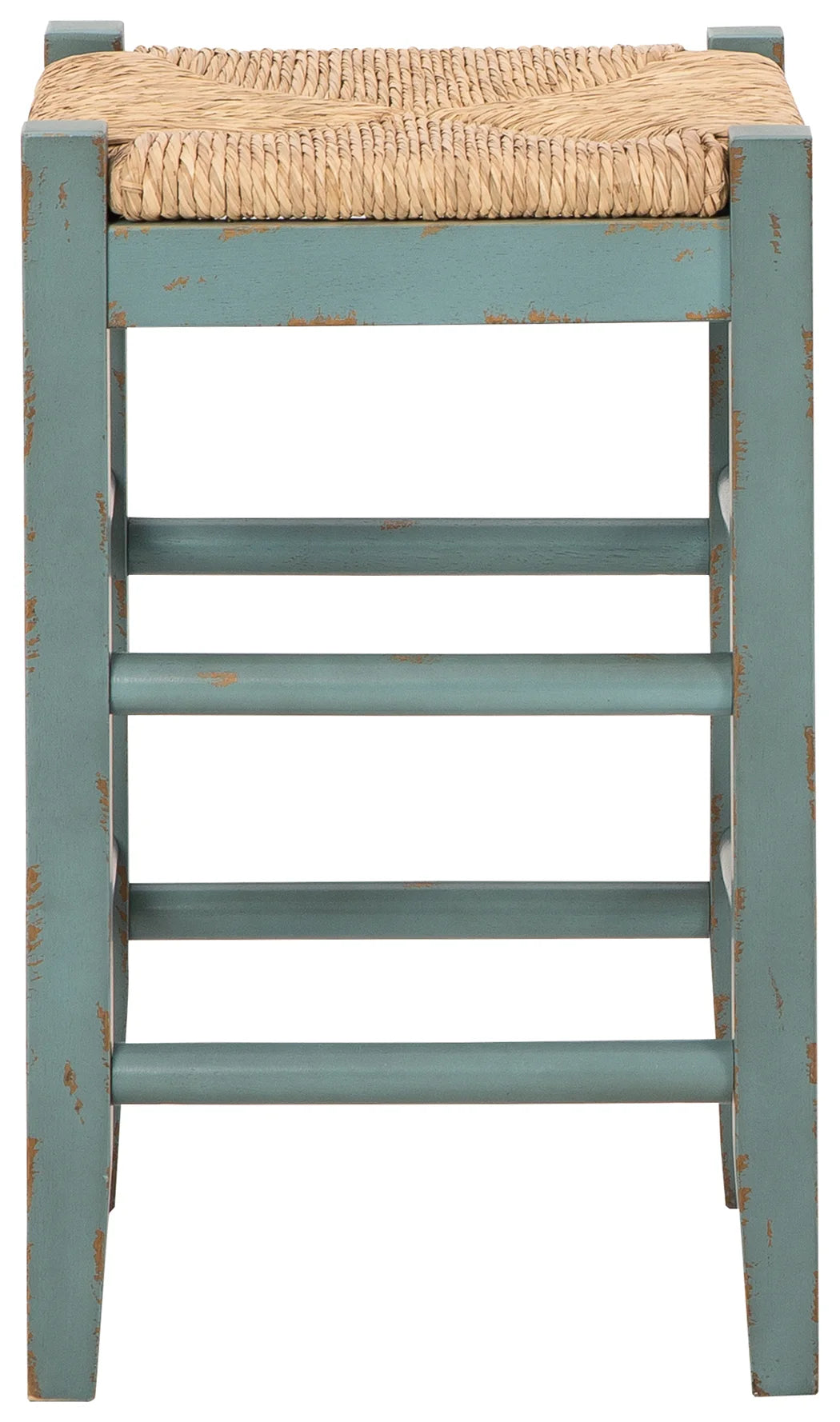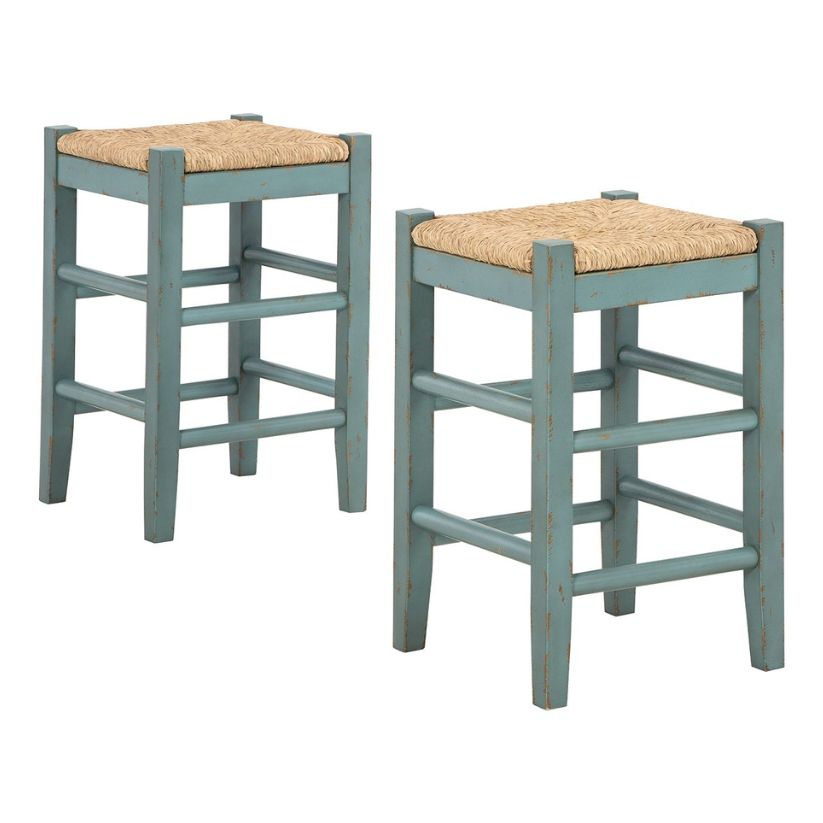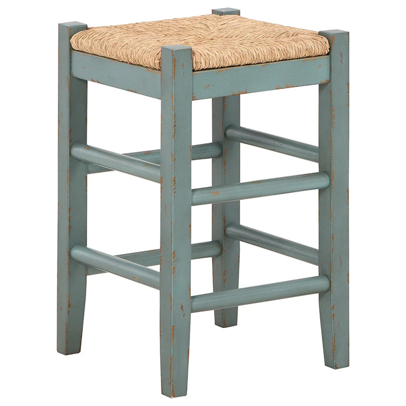 Bring the vintage casual vibe you love to the kitchen with this counter height bar stool. A stylish seating solution in a blue rubbed-through finish, this charming stool completes your dining space with ease. The woven seagrass seat and wood stretchers create an effortlessly beautiful look with endless possibilities.