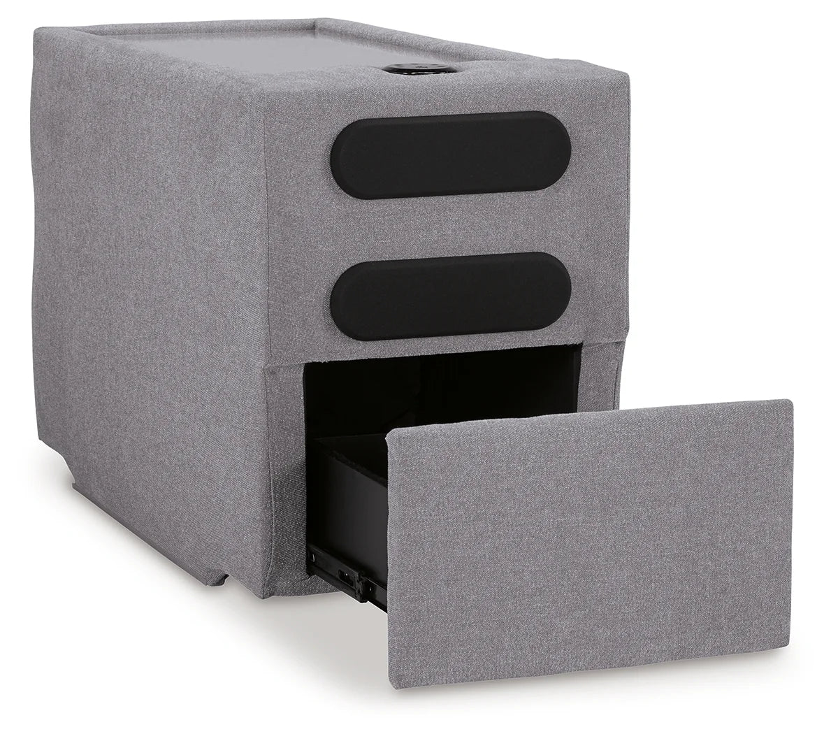 - Console with removable plexiglass top; pull-out drawer for storage; built-in audio sound system with wireless connectivity; audio controls located on console; USB charging; power cord included, UL Listed