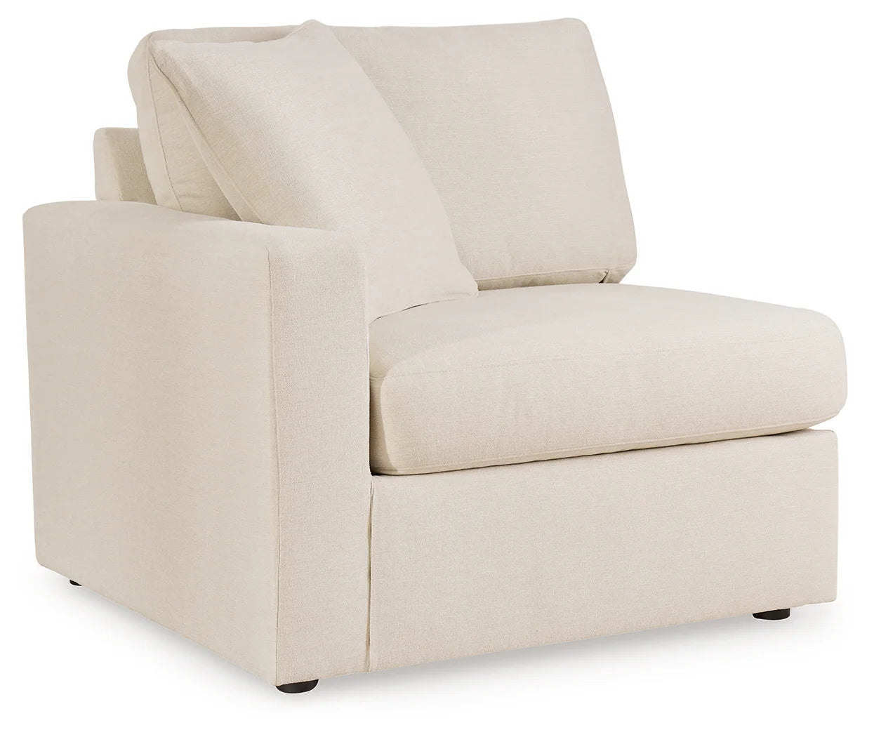 - Includes 4 modular pieces: left-arm facing corner chair, armless chair, console with storage and right-arm facing corner chair