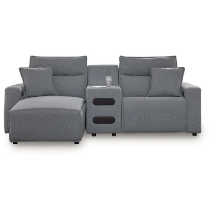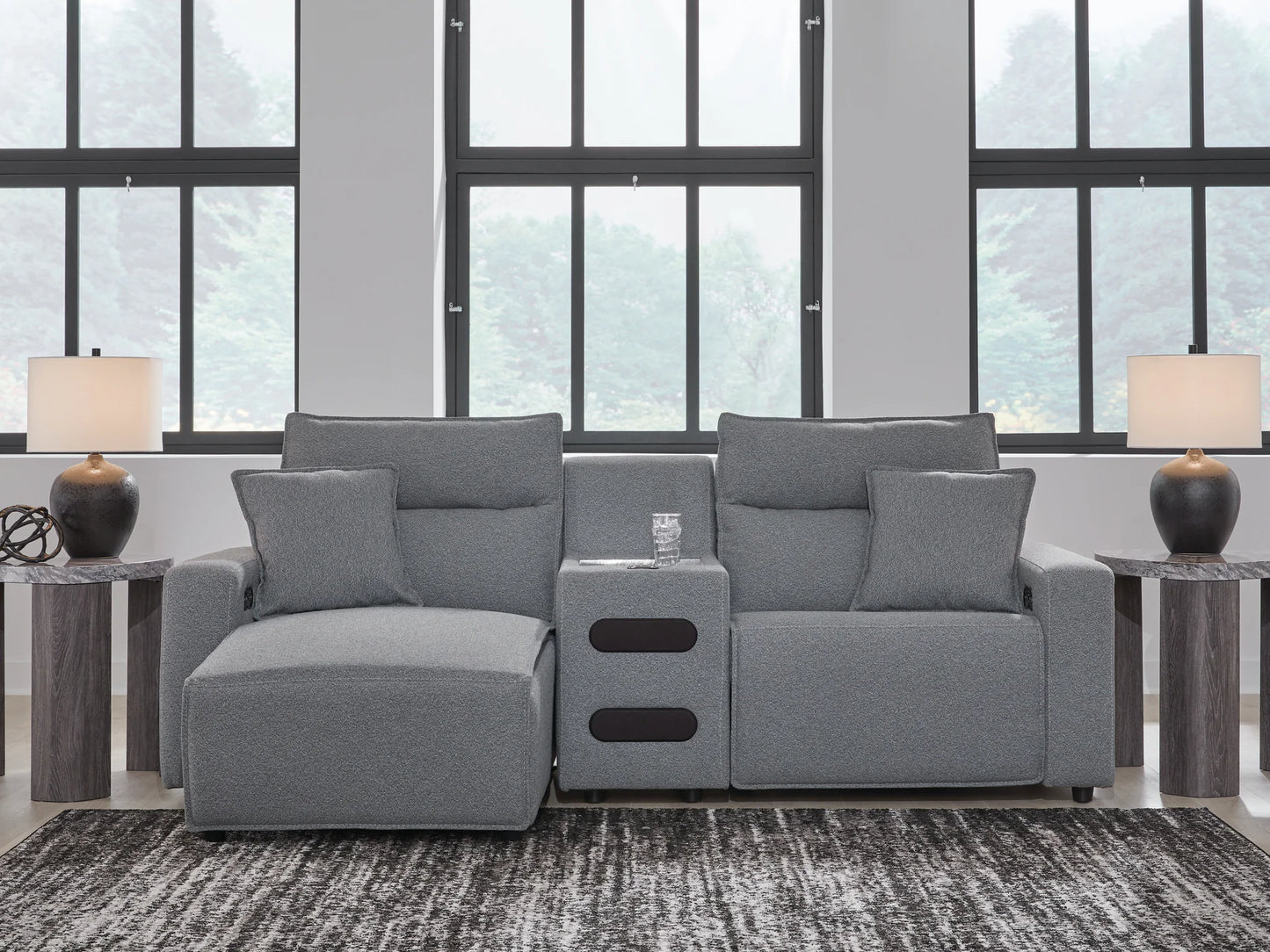Modmax - Salt And Pepper - 3-Piece Power Reclining Sectional With LAF Chaise And Audio Console