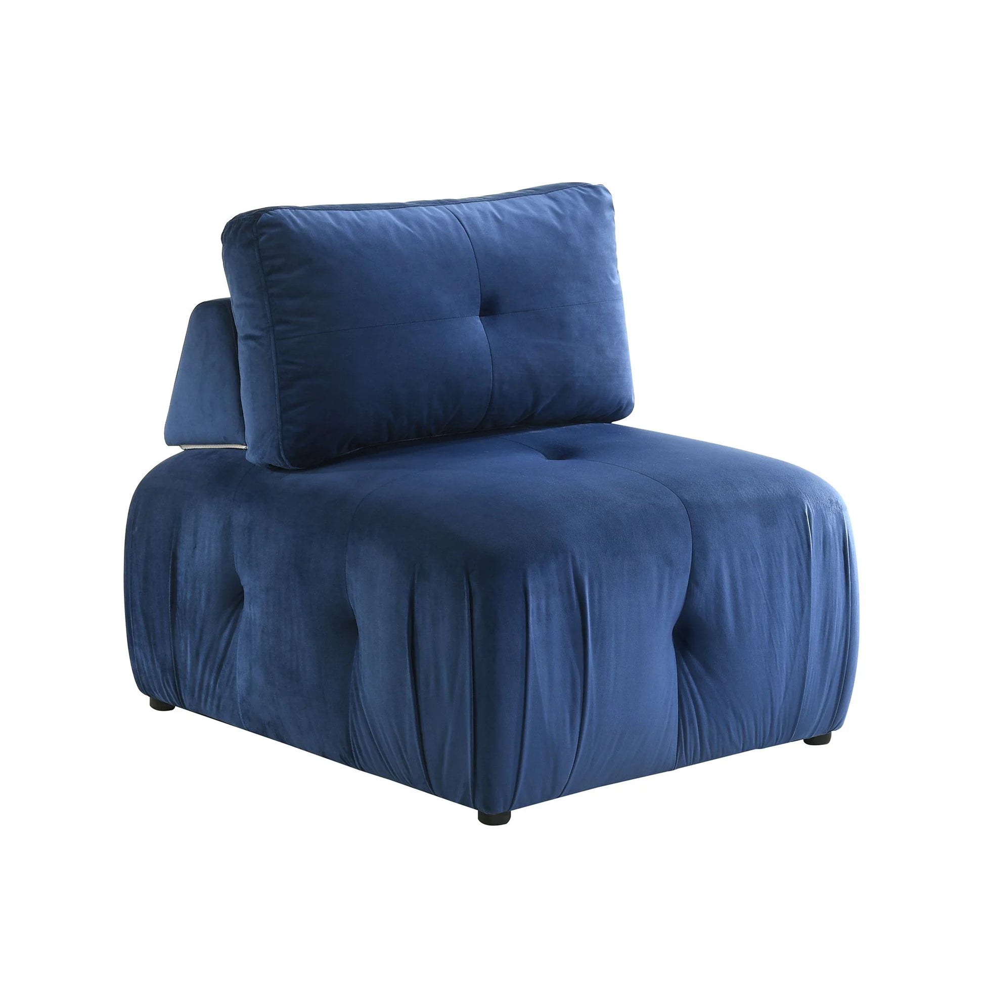Outfit your space with the lavish design of the Nahla Modular Chair. This piece freestanding nature allows versatility in staging and adapts to various room shapes and sizes. The chair framing of durable engineered wood is comfortably and fully upholstered in luxe velvet with decorative button tufting, while the seating is amply padded with supportive cushioning. The detachable back cushion and included pillow ease maintenance, furthering this piece appeal. For a comfortable, quality, and stylish addition to your room, the Nahla Modular Chair delivers.