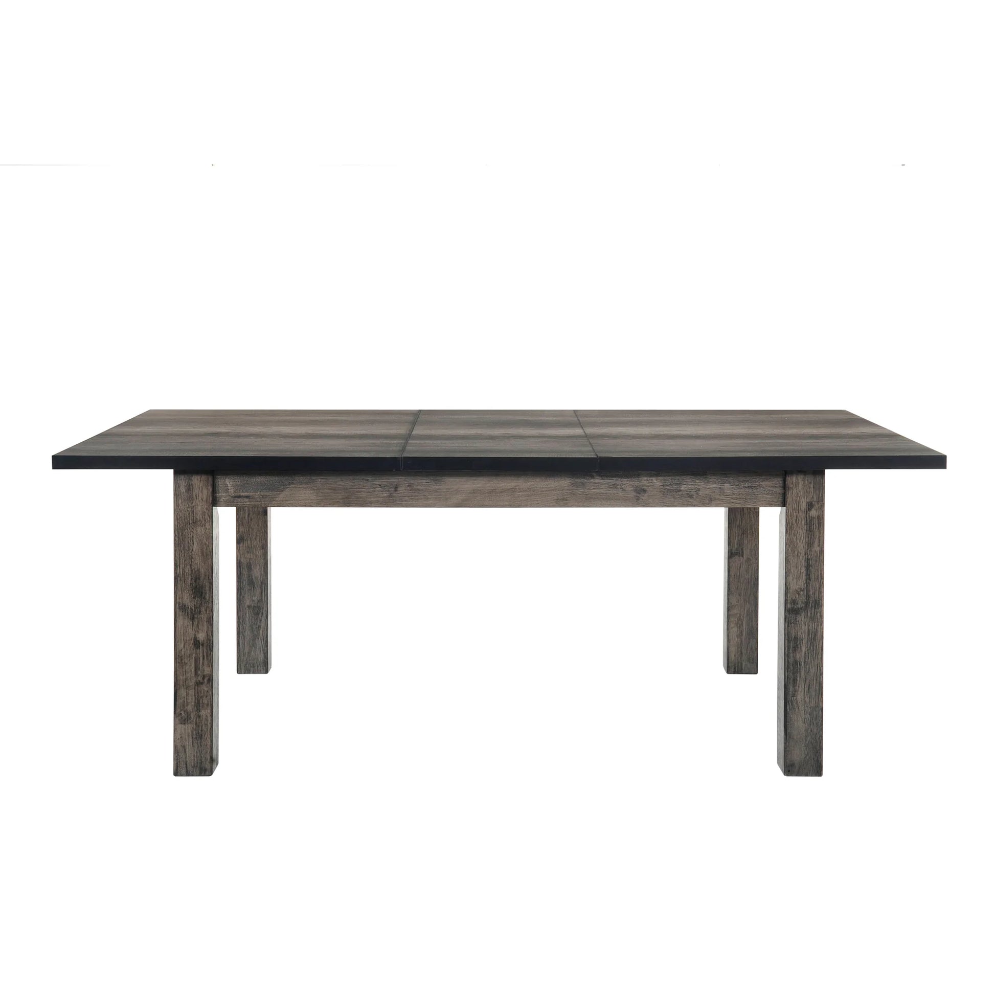 The Nathan Dining Table is just the update your dining room is craving! This rectangle dining table comes with an 18" removable leaf; great for adding extra space to the dinner table at the last minute if needed. The table comes in a cool, gray oak finish that will pair perfectly with existing decor you have. The table will easily sit up to six people when the leaf is dropped in. The square legs complete the rustic look of this dining room table.