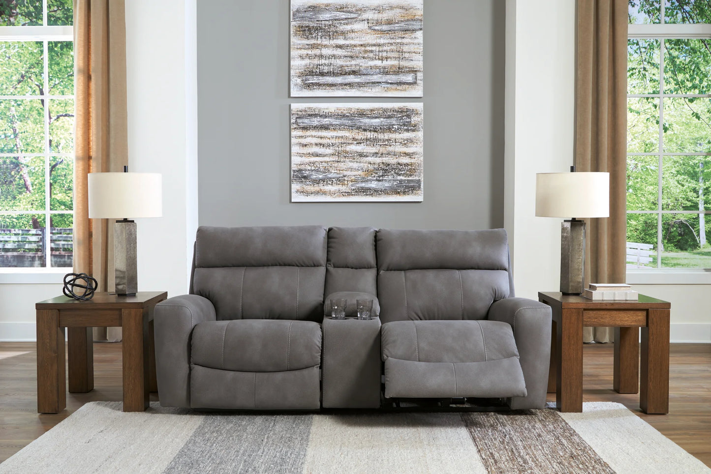 Next-gen Durapella - Slate - 3-Piece Power Reclining Sectional Loveseat With Console
