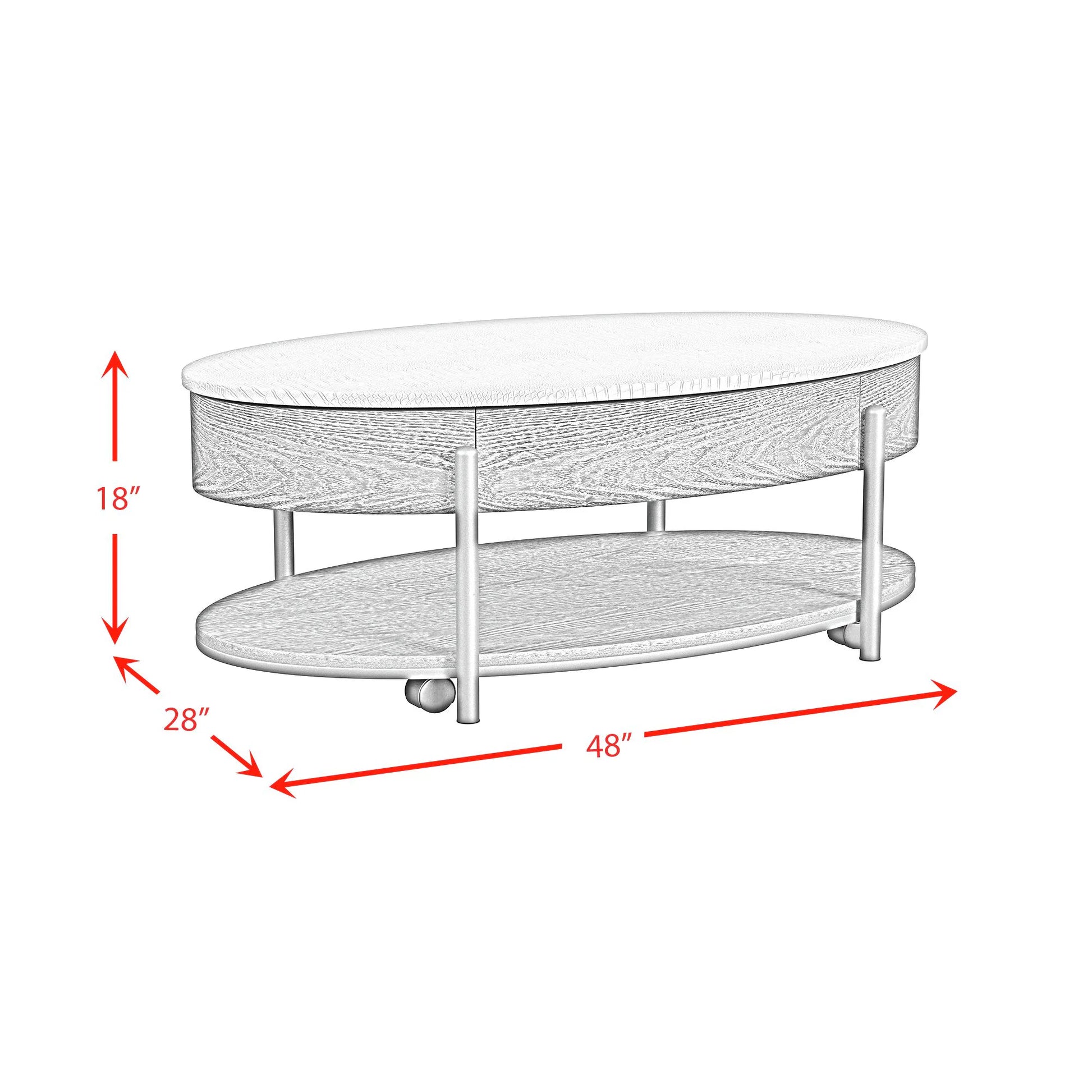 Introducing the sophisticated Nica Coffee Table crafted for both style and practicality. Featuring a dual-tone design with an ecru top and rich brown base, this table exudes contemporary elegance. The coffee table, supported by sleek metal legs, offers a convenient lift-top mechanism and an embossed top for added texture. It also includes casters for mobility and an under-table shelf for storage. Ideal for those seeking modern aesthetics with functional versatility.