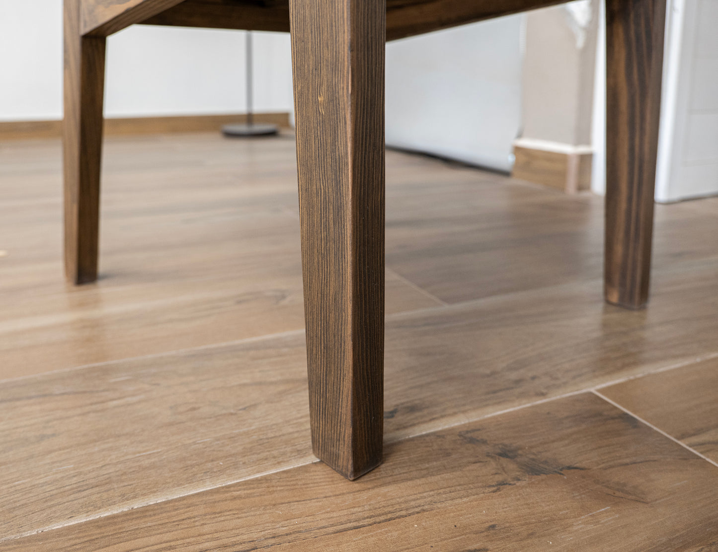 - Finish is achieved through a multi-step lacquer in brown tones.