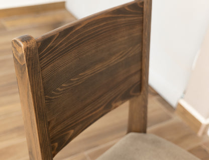 The Novus Lodge chair, crafted from solid pine wood and upholstered in gray faux leather, seamlessly blends simplicity of form with a warm color palette. Its timeless design makes it a perfect addition to any home, offering both comfort and style.