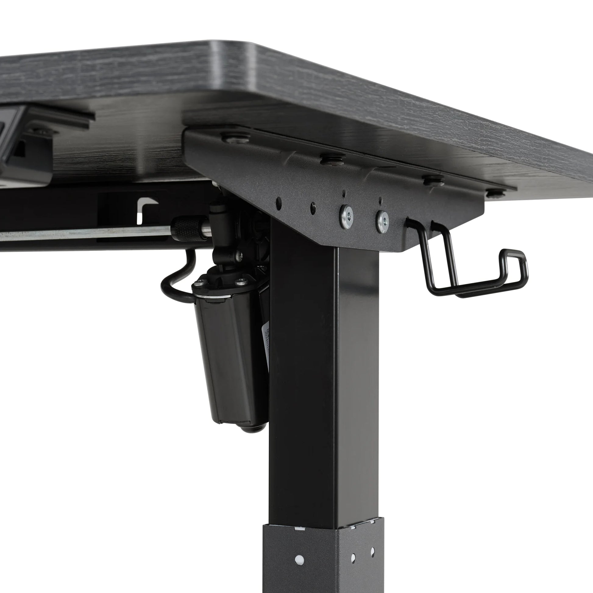 Elevate your workspace with the Oakland Desk, designed for the modern professional. Crafted with a sturdy powder-coated steel frame, this desk offers durability and style. Its height-adjustable mechanism and programmable heights allow seamless transitions from sitting to standing, promoting a healthier work routine. Stay powered up with built-in USB chargers, including a USB-C port, and keep your space clutter-free with thoughtful cable management. The spacious desktop surface accommodates all your essentials, while two headphone holders and anti-skid feet add convenience and stability. The Oakland Desk is where functionality meets sophistication, transforming any space into an efficient and stylish work hub.