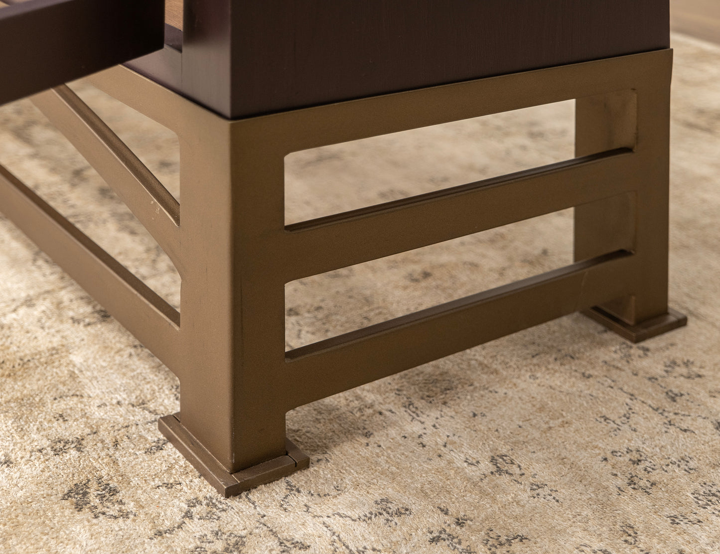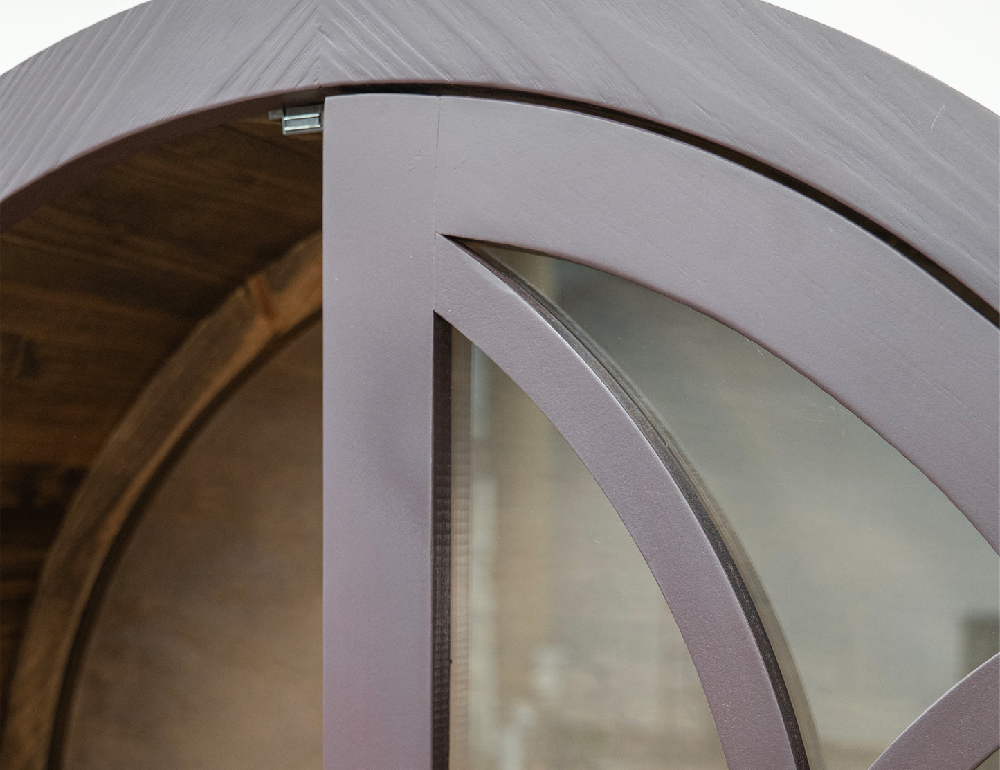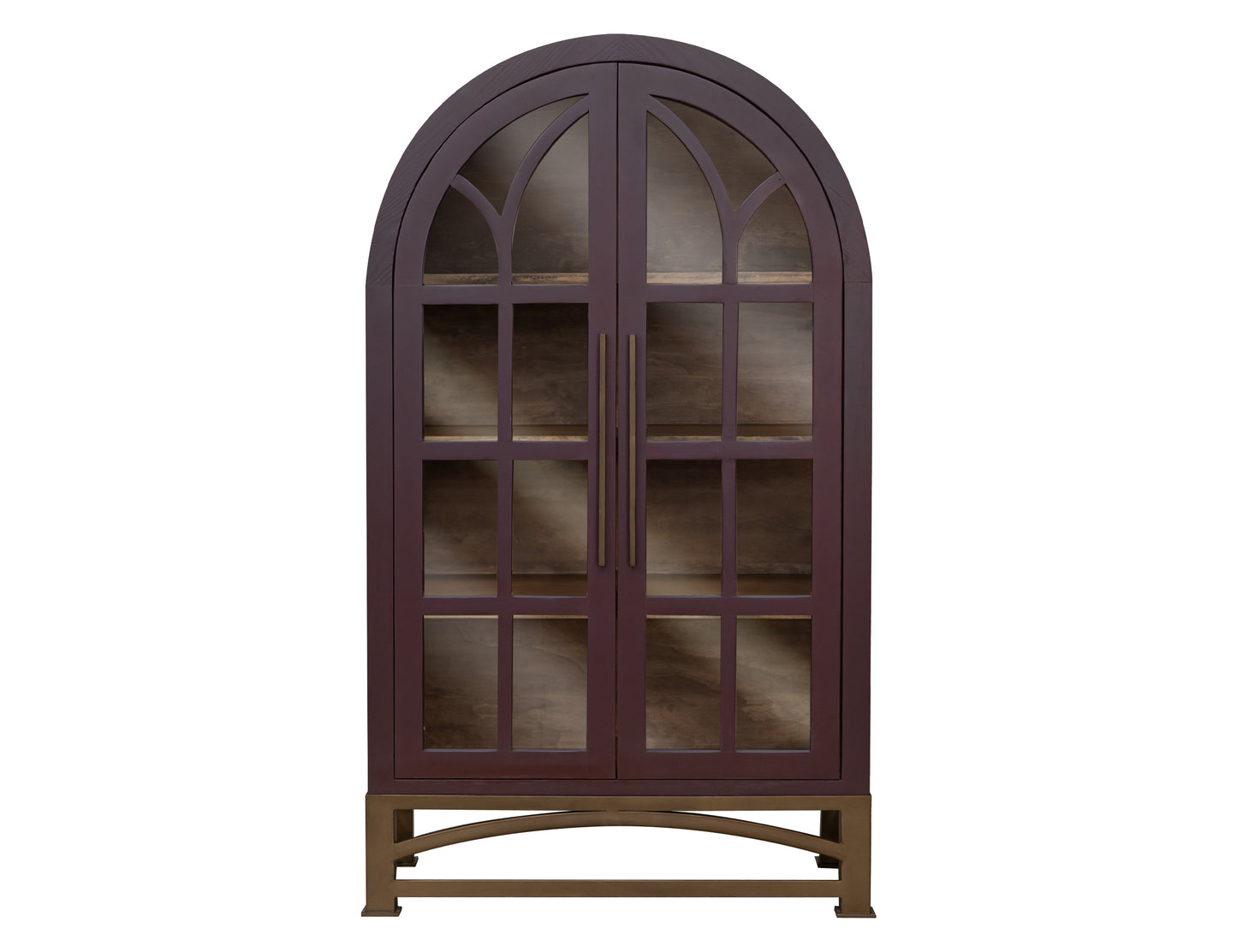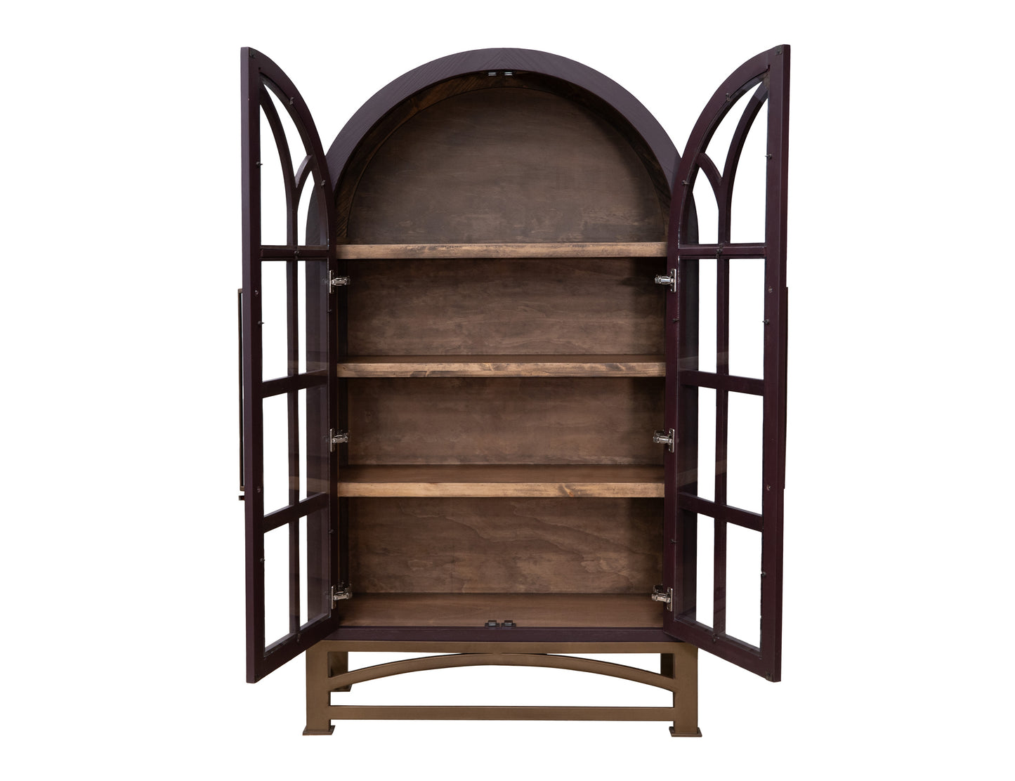 Drawing inspiration from Mid-18th century French furniture, our Obsidian cabinets seamlessly blend the charm of the old world with contemporary design. Crafted from lightly distressed pine wood and elegantly set within a metal base, this console features a beautifully paneled oval glass door, making it a timeless addition to your home.