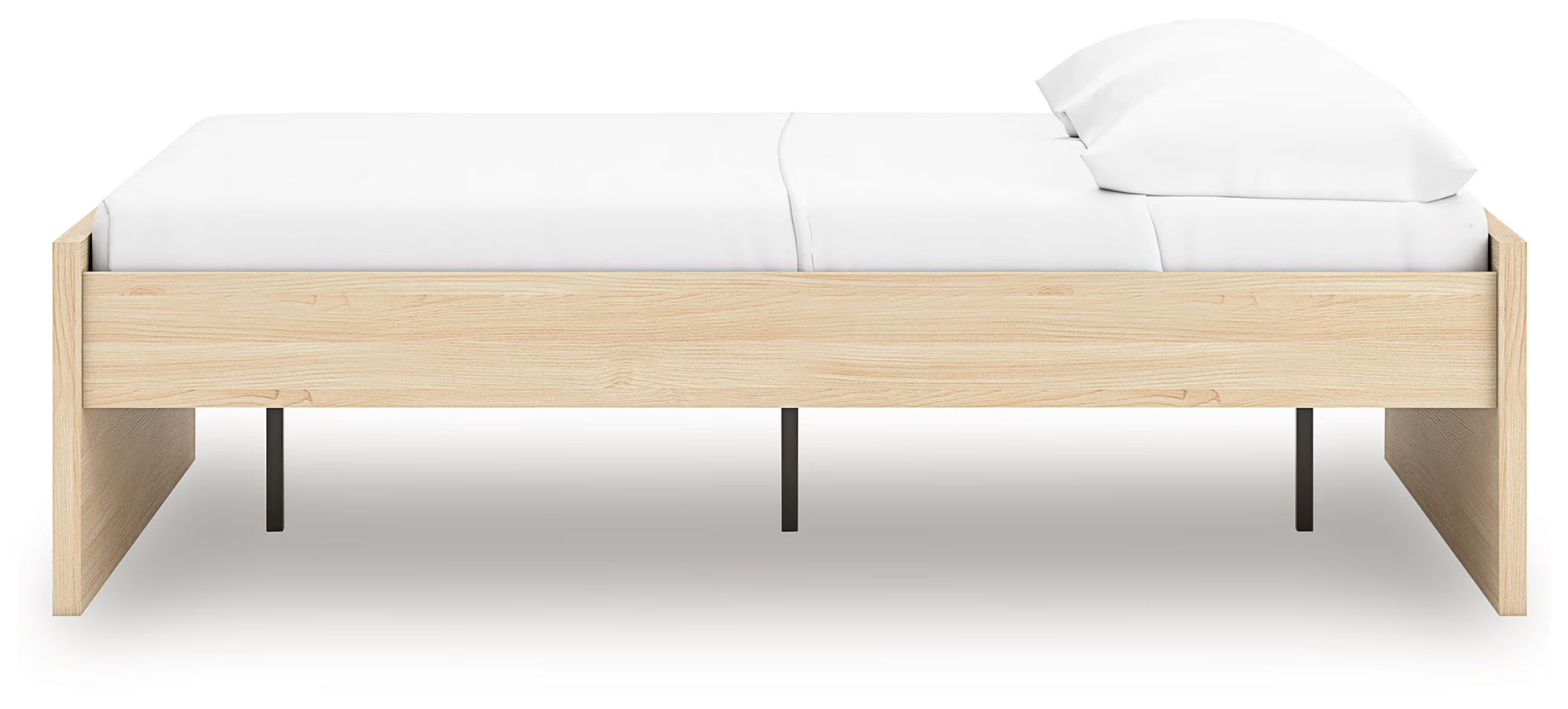 Create the modern bedroom of your dreams. This full platform bed offers a minimal design with maximum style, combining ultra-clean lines and a relaxed natural finish. It doesn't need a box spring or foundation, so you can splurge on a mattress that's sure to carry you away to a soothing place.