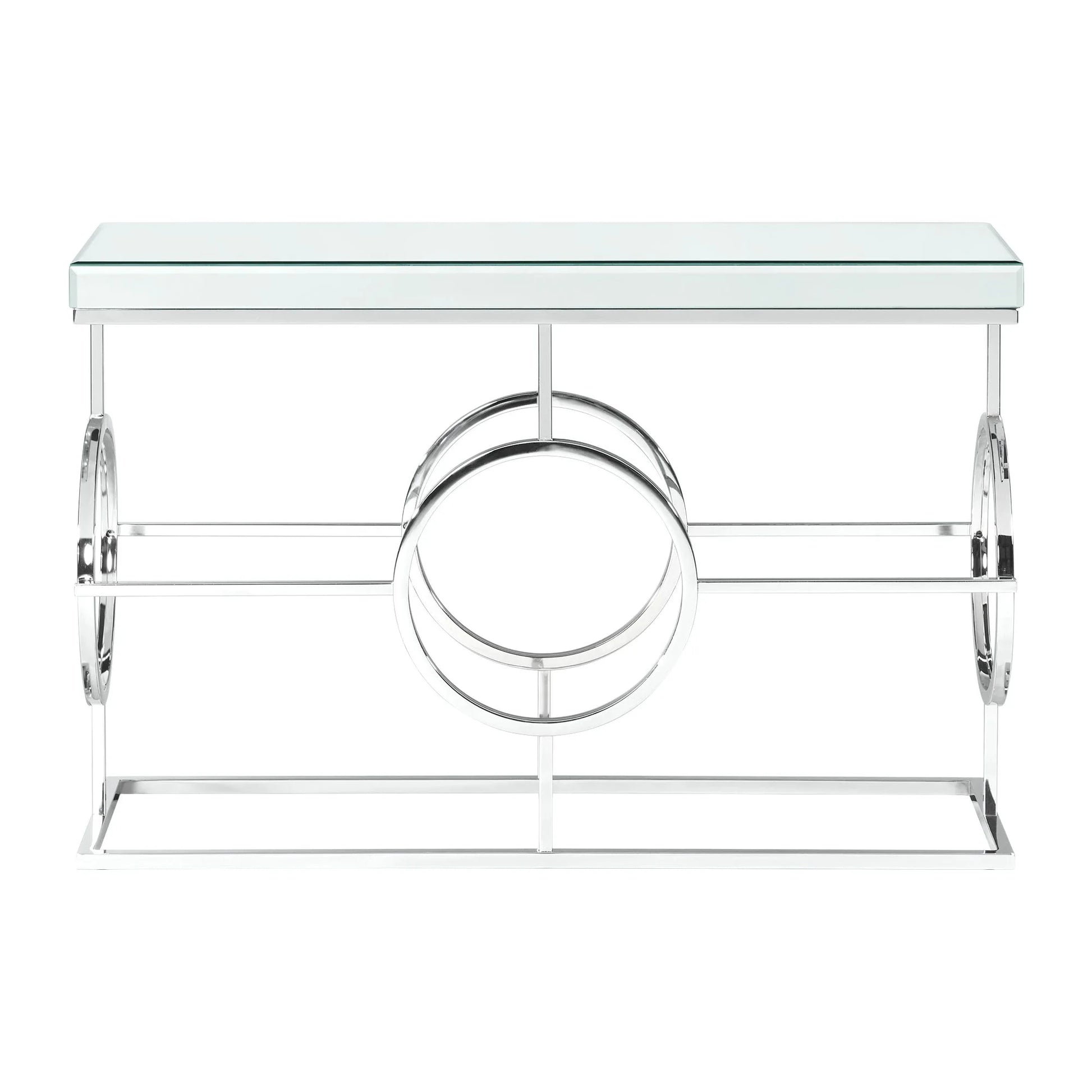 The Pearl Rectangle Mirrored Sofa Table will have you feeling like a queen in your living room! This accent table features a mirrored table top design, taking glam style to the next level. The table base features an intricate design, one that you will admire more and more every day. The sleek, chrome finish is going to pair well with any existing, glamorous decor you might already have. Add this ultra glam accent table to your home today for a look that will always be in style.