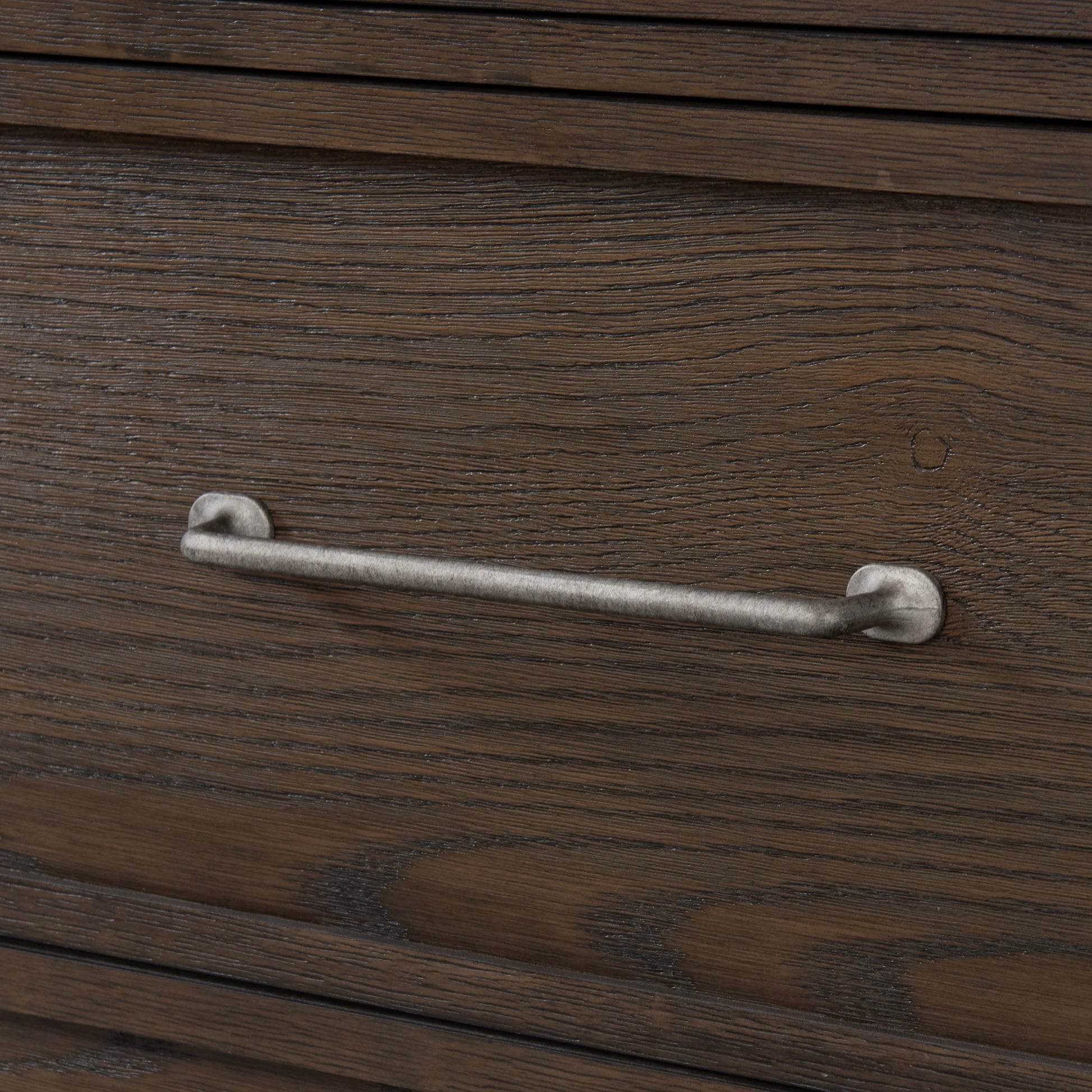 The Preston Bedroom Collection is constructed with Oak Veneer and Select Hardwoods. This collection is offered in a Weathered Vintage Oak Finish that is lightly wire-brushed and is complimented by the antiqued bronze hardware on all case-pieces.
