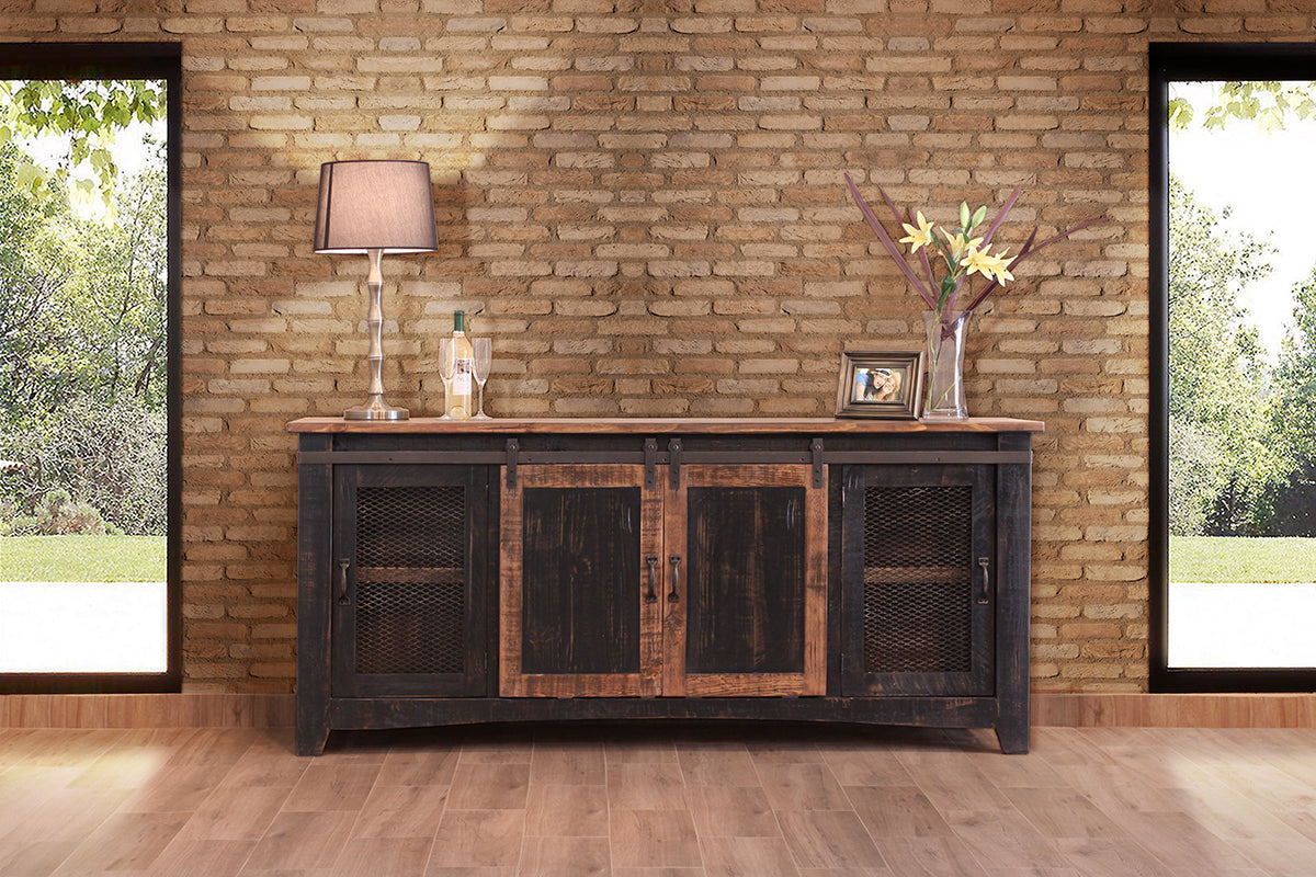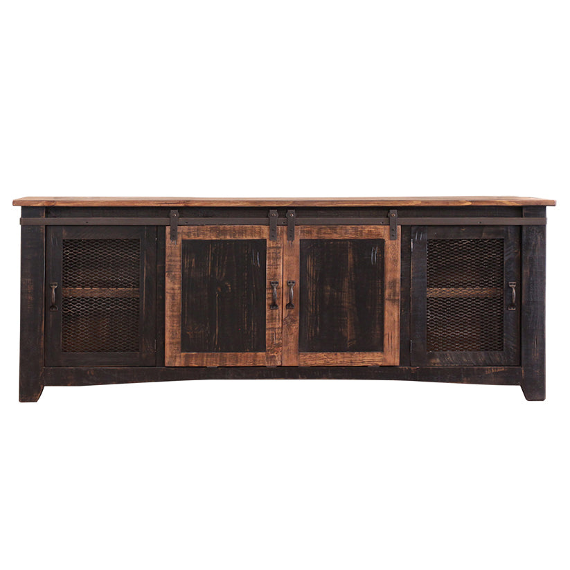 Pueblo Black - 80" TV Stand / Console - Black / Medium Brown