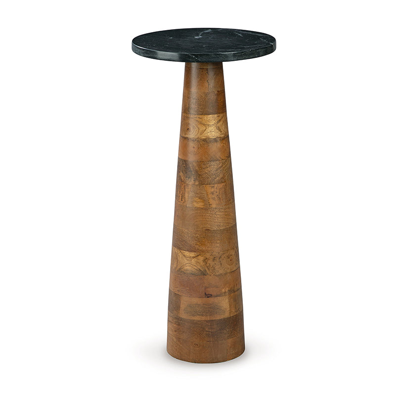 Blending the beauty of marble and wood, this accent table is eager to host your decorative accents or help keep relaxation essentials on hand. Its poised, slim form easily fits between a sofa and loveseat. Stunning in its simplicity, you’ll love the elevated look it brings to your lounge area.