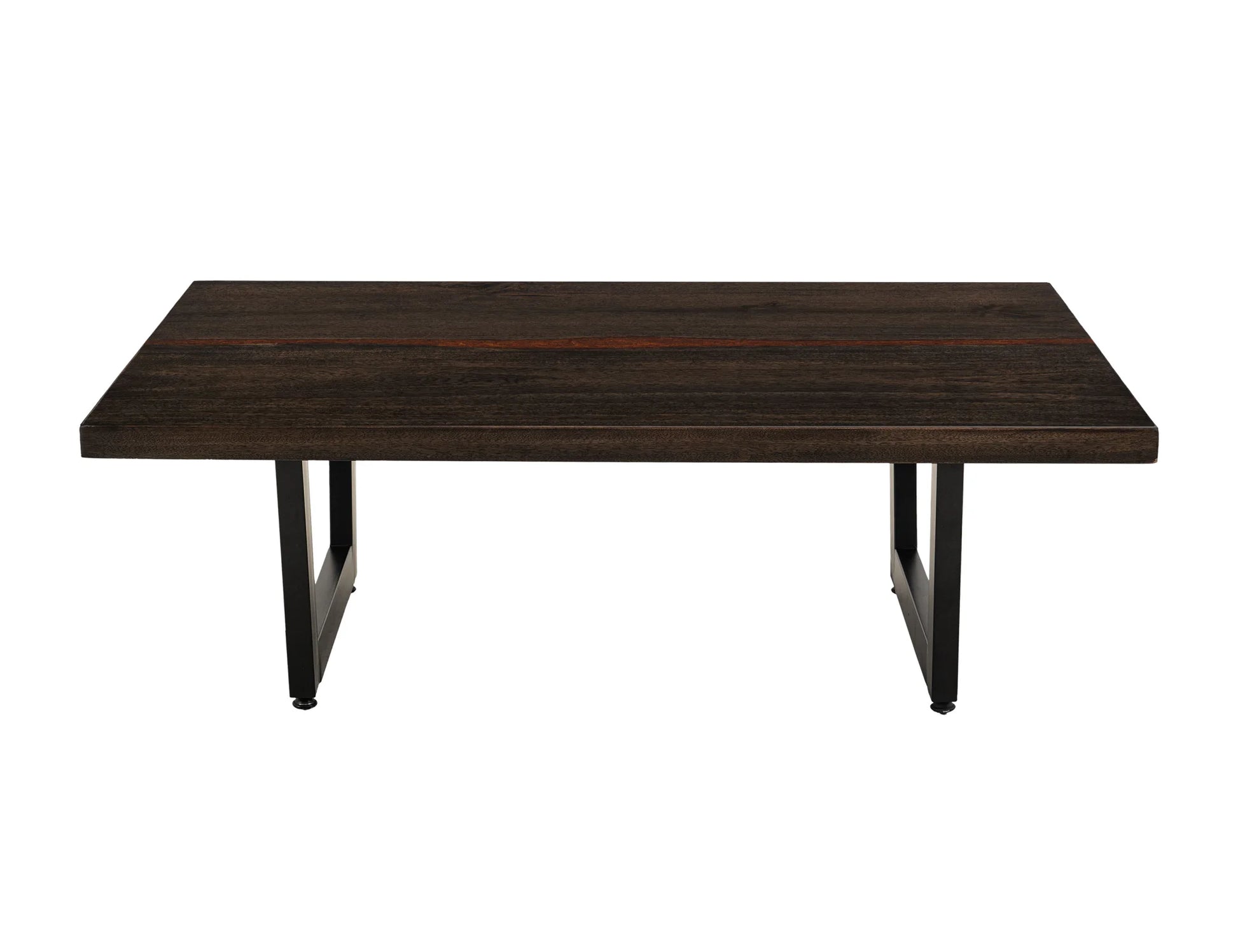 - The table's top is enhanced with epoxy resin infused with copper mineral flakes.