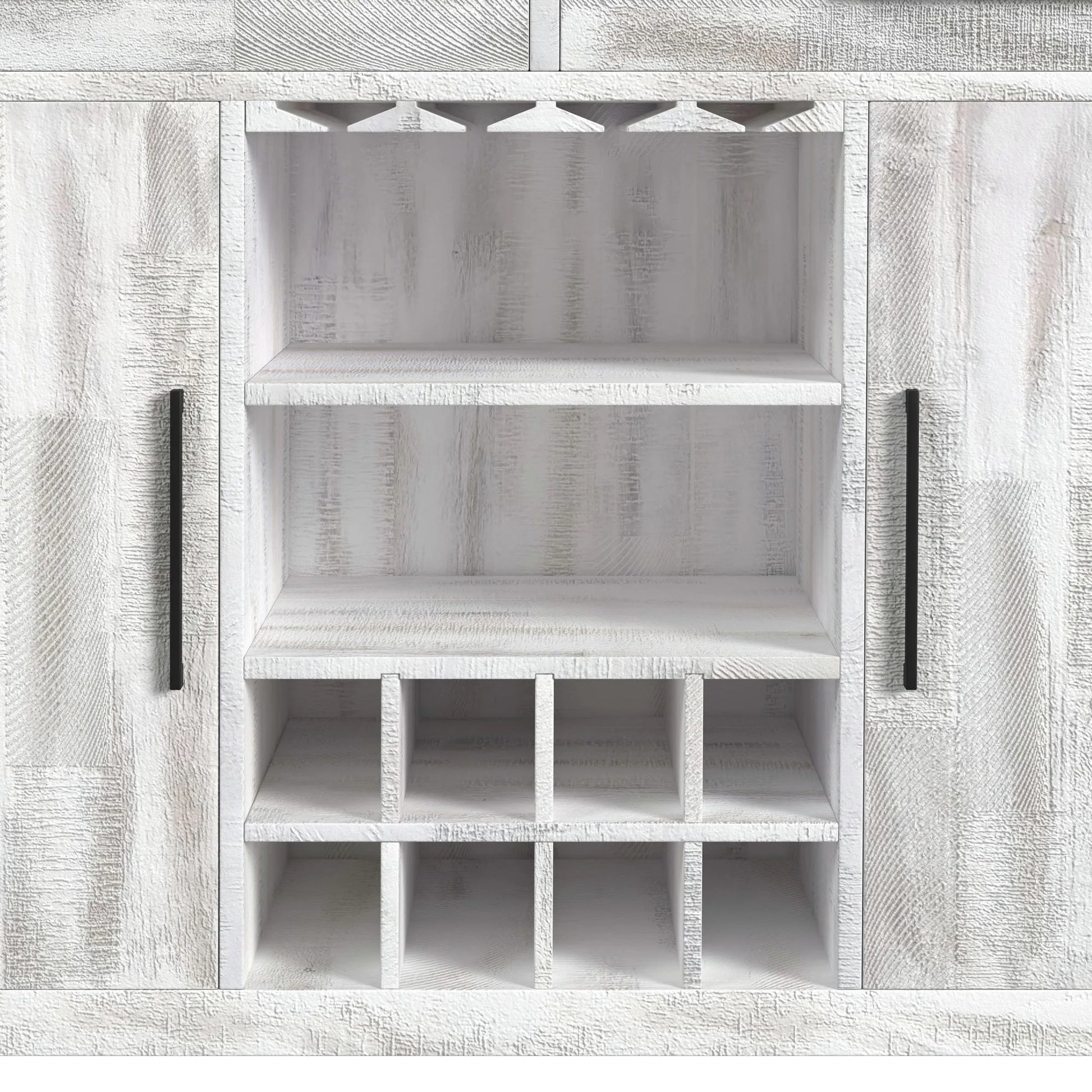 Accent your dining area with the practical style of the Rogen Rustic Bar Table. This standard bar height table is made with a quality acacia veneer and is conveniently equipped with wine glass holders, bottle racks, an ice tray, and an integrated USB port to simplify utilizing appliances. A felt-lined top drawer complements two spacious cabinets, while two open shelves further your storage and staging options. For an understated yet refined addition to your dining area, the Rogen Rustic Bar Table delivers in quality and style.