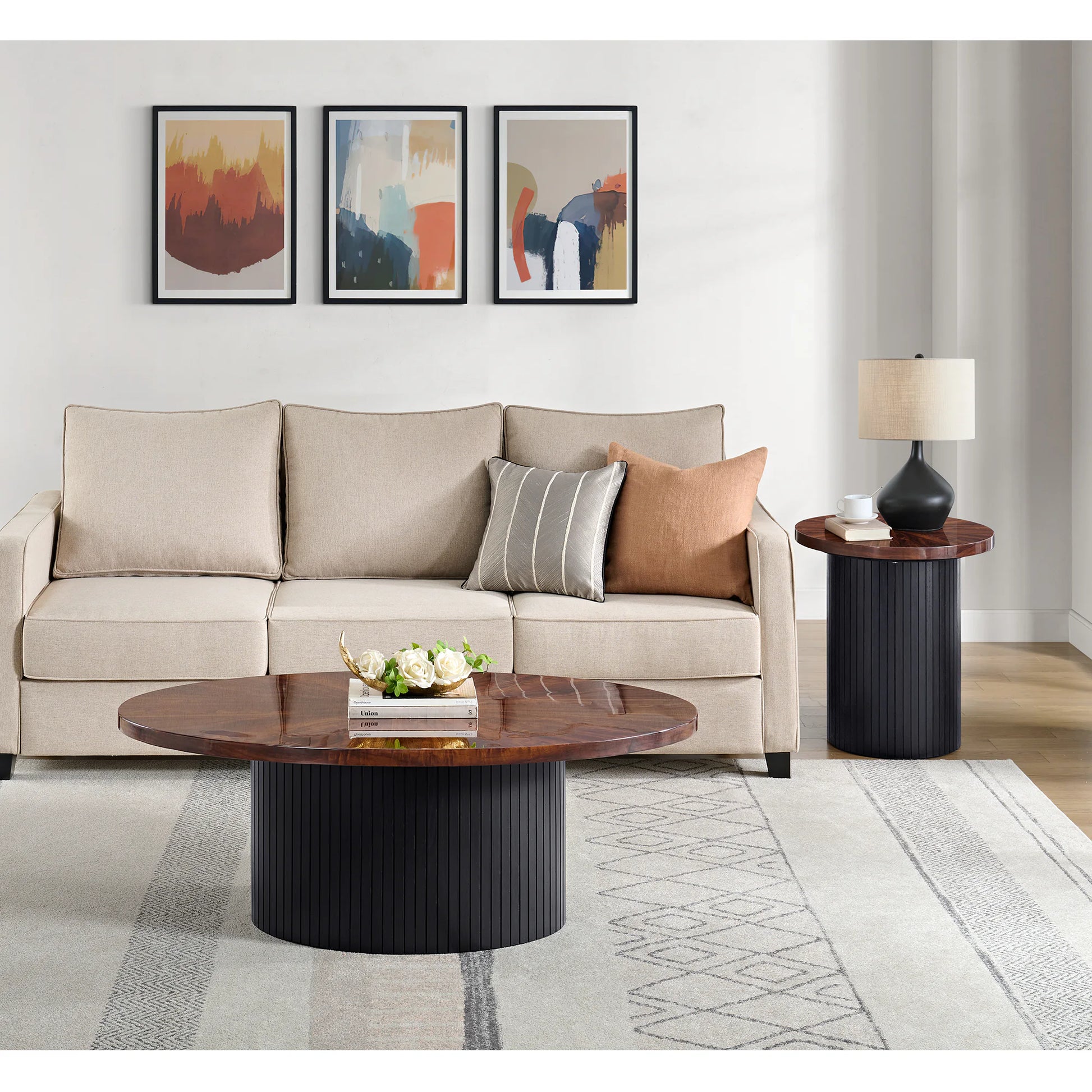 Elevate your space's character with the stylishly crafted Rosemond 2PC Occasional Table Set. Designed with style and practicality in mind, the coffee table's modern oval shape creates an inviting focal point, while the coordinating, round end table balance the rest of your living space. The two piece's various heights create visual appeal, while the robust, cylindrical bases offer stability. Sleek and glossy faux-marble veneer tops exude sophistication, creating a perfect complement to the durable beech wood bases. Outfit your living space in the modern and appealing Rosemond 2PC Occasional Table Set for a gracefully polished ambiance.